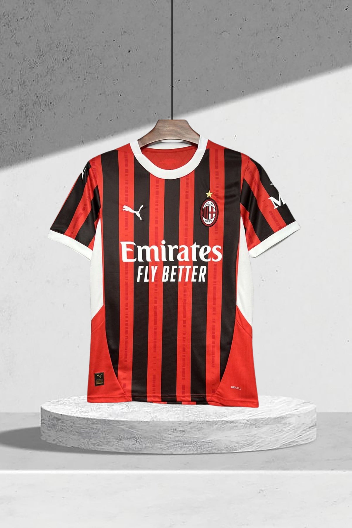 Erlebe die Leidenschaft des AC Milan mit dem neuen Heimtrikot für die Saison 2024–2025. Die klassischen roten und schwarzen Streifen kommen in einem dynamischen Design, das Tradition und Innovation vereint.
