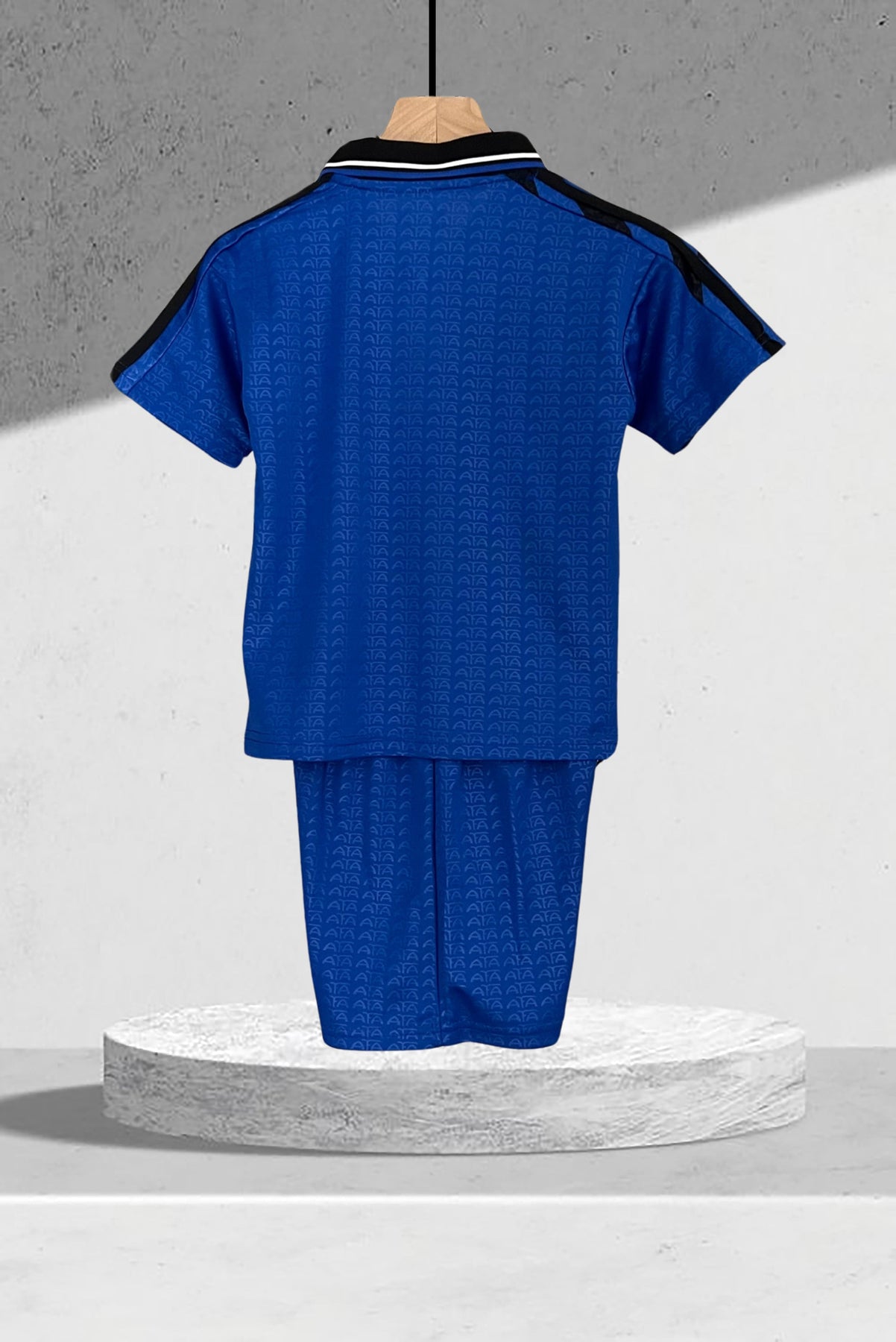 • Shorts: Passend in Marineblau mit weißen Details – ein vollständiges Retro-Set.