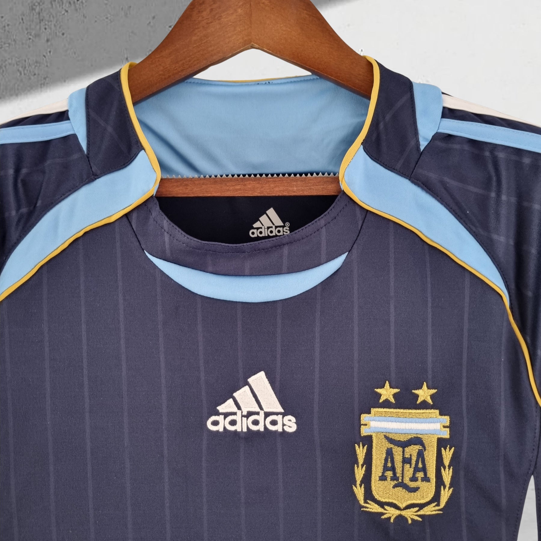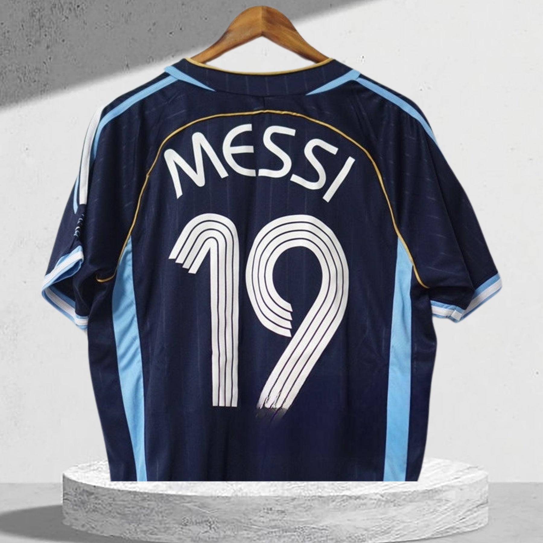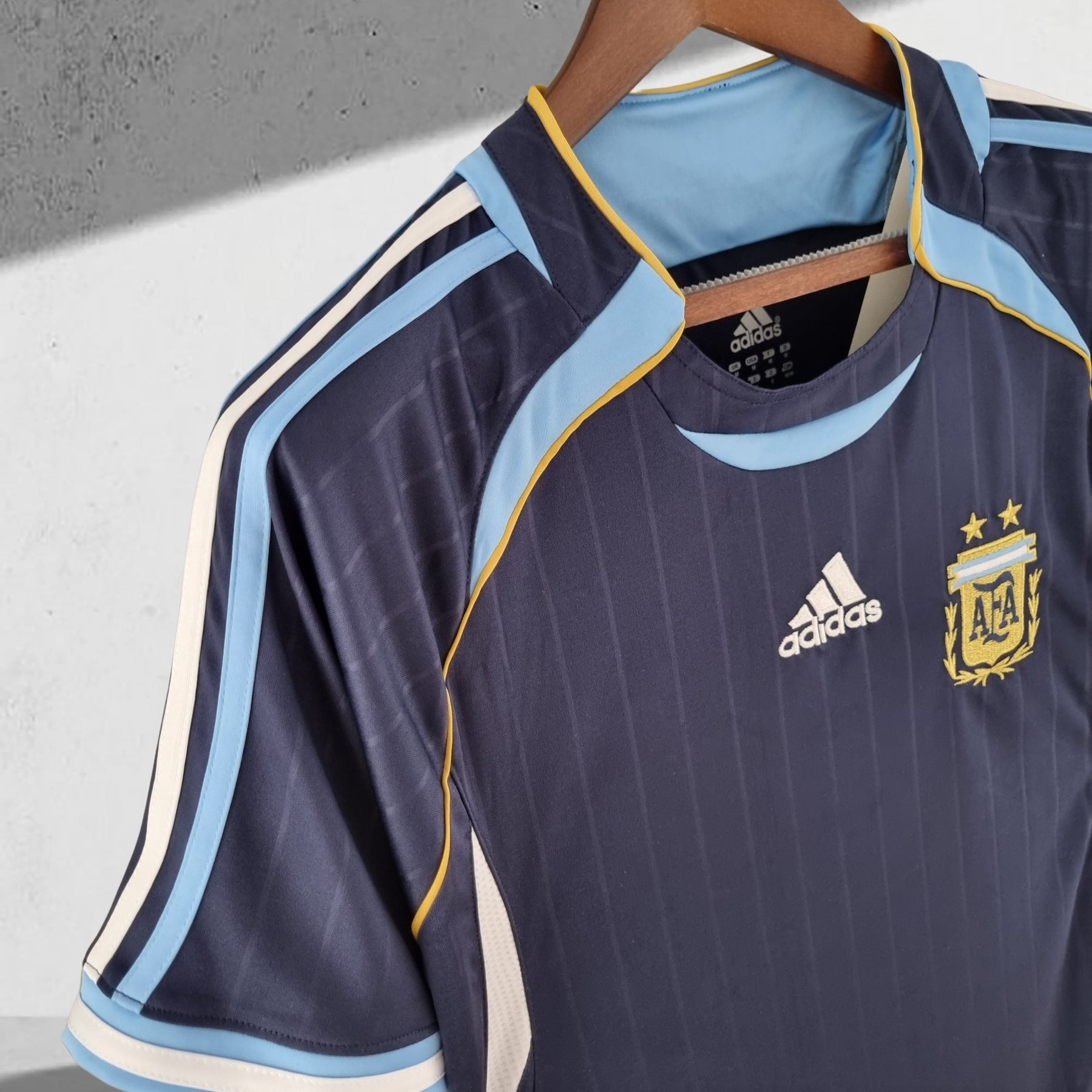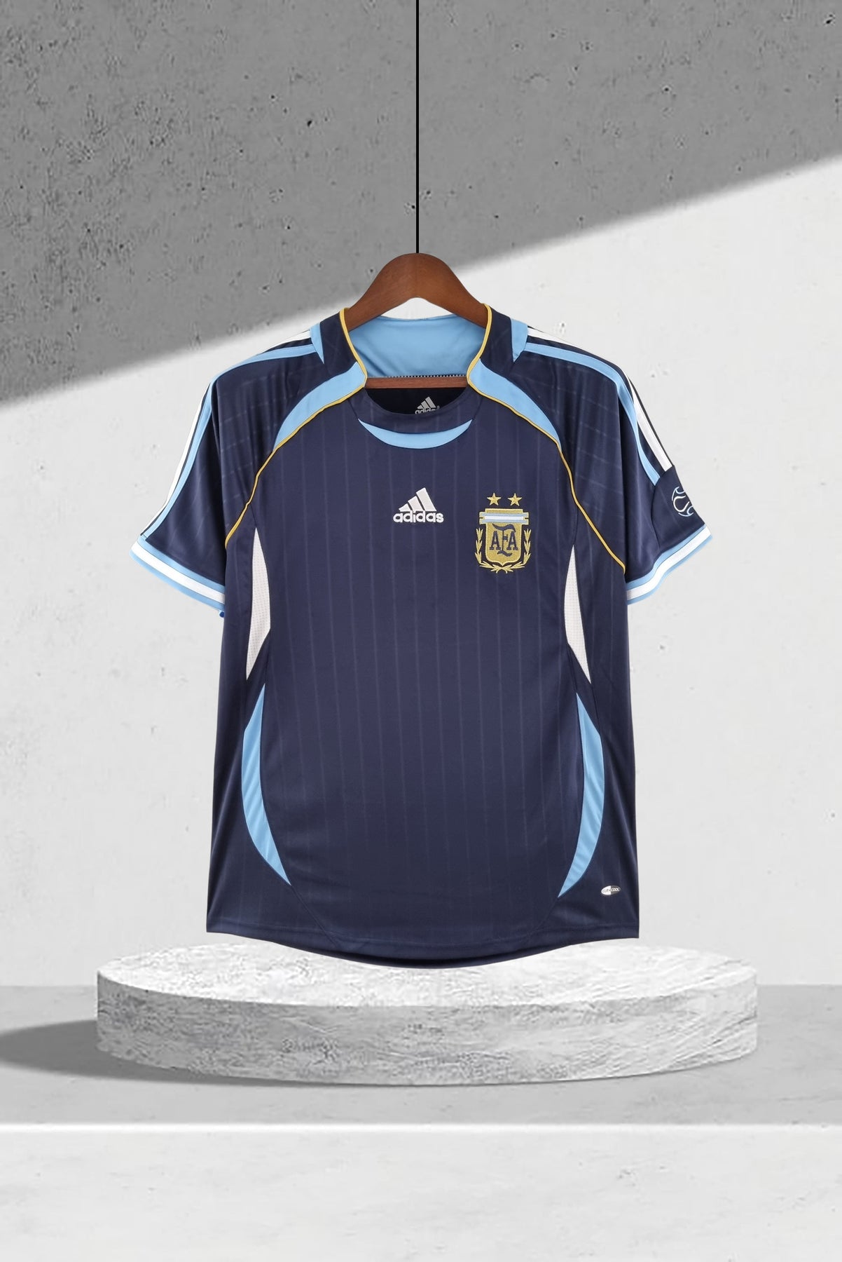 Entdecken Sie das Argentinien 2006 Auswärtstrikot – ein elegantes schwarz-silbernes Design, das den unvergesslichen Charakter einer WM voller Talent verkörpert. Mit modernem Schnitt und stilvollen Akzenten ist dieses Trikot nicht nur ein Kleidungsstück, sondern ein Symbol für die großen Momente des argentinischen Fußballs.