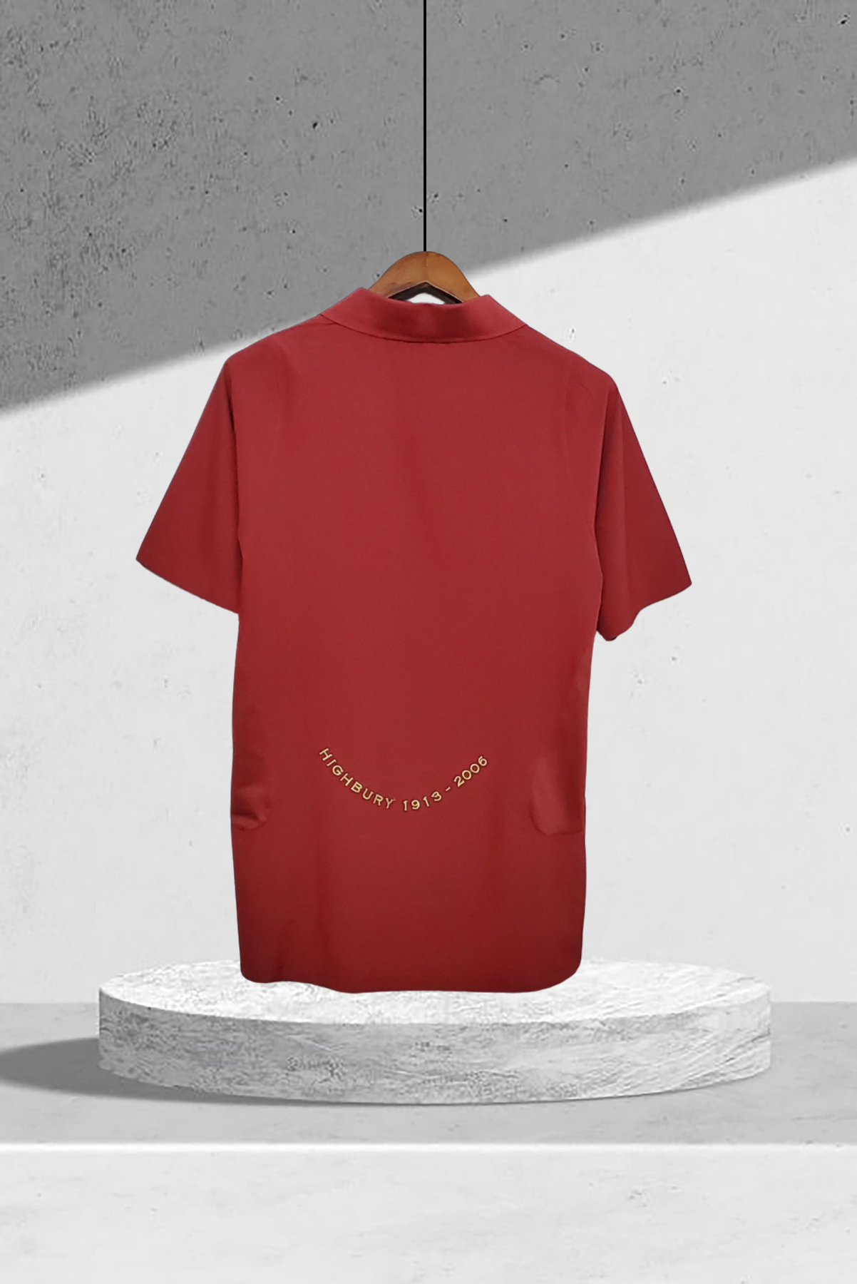 Das tief burgunderrote Trikot, geschmückt mit goldenen Akzenten und dem Aufdruck „Highbury 1913–2006“, symbolisiert den Abschied vom legendären Stadion und die emotionale Saison.