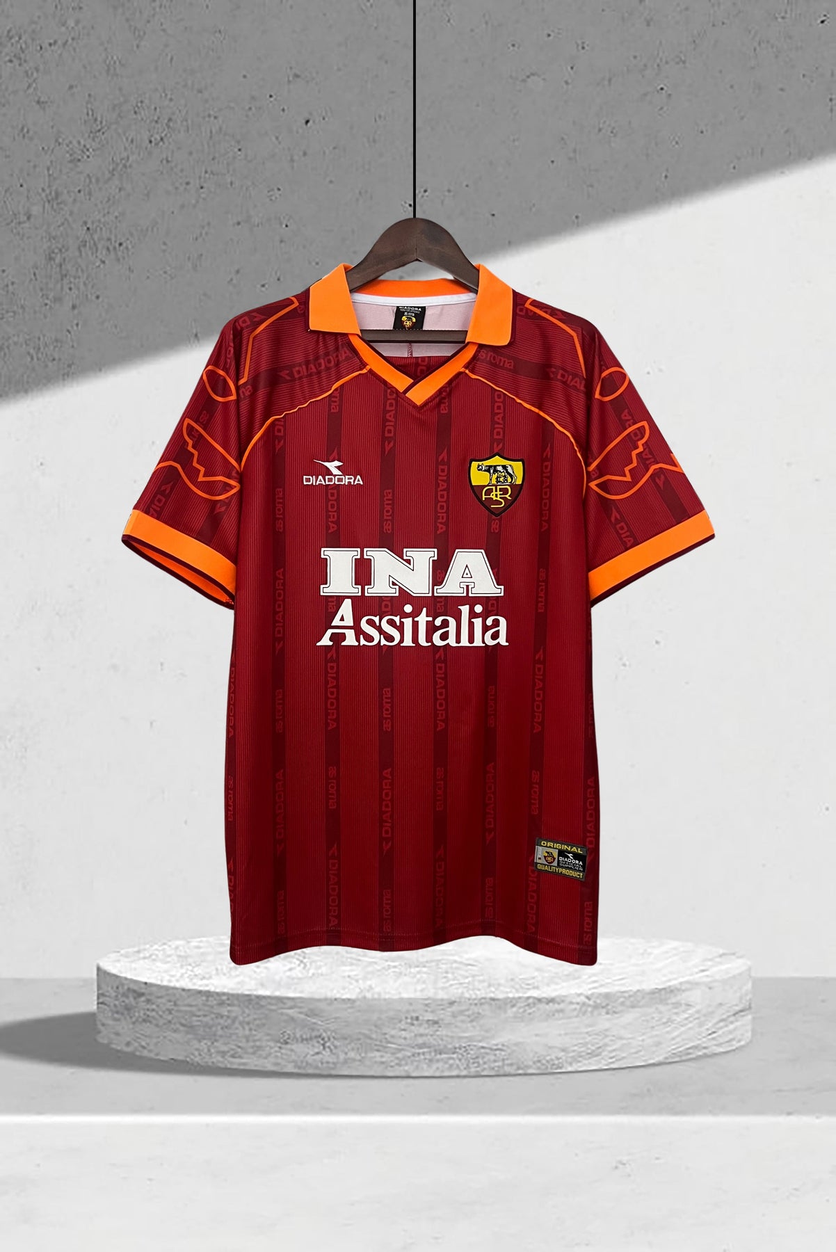 Trage das Trikot, das von Stars wie Francesco Totti, Gabriel Batistuta und Vincenzo Montella getragen wurde. Ein Design, das den Übergang zu einer goldenen Ära und den unverwechselbaren Teamgeist vereint. Ideal für Fußballfans und Sammler.