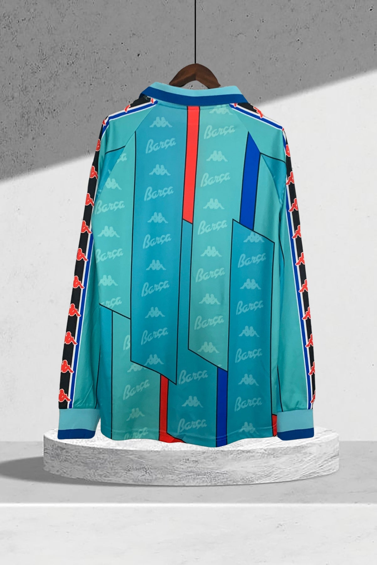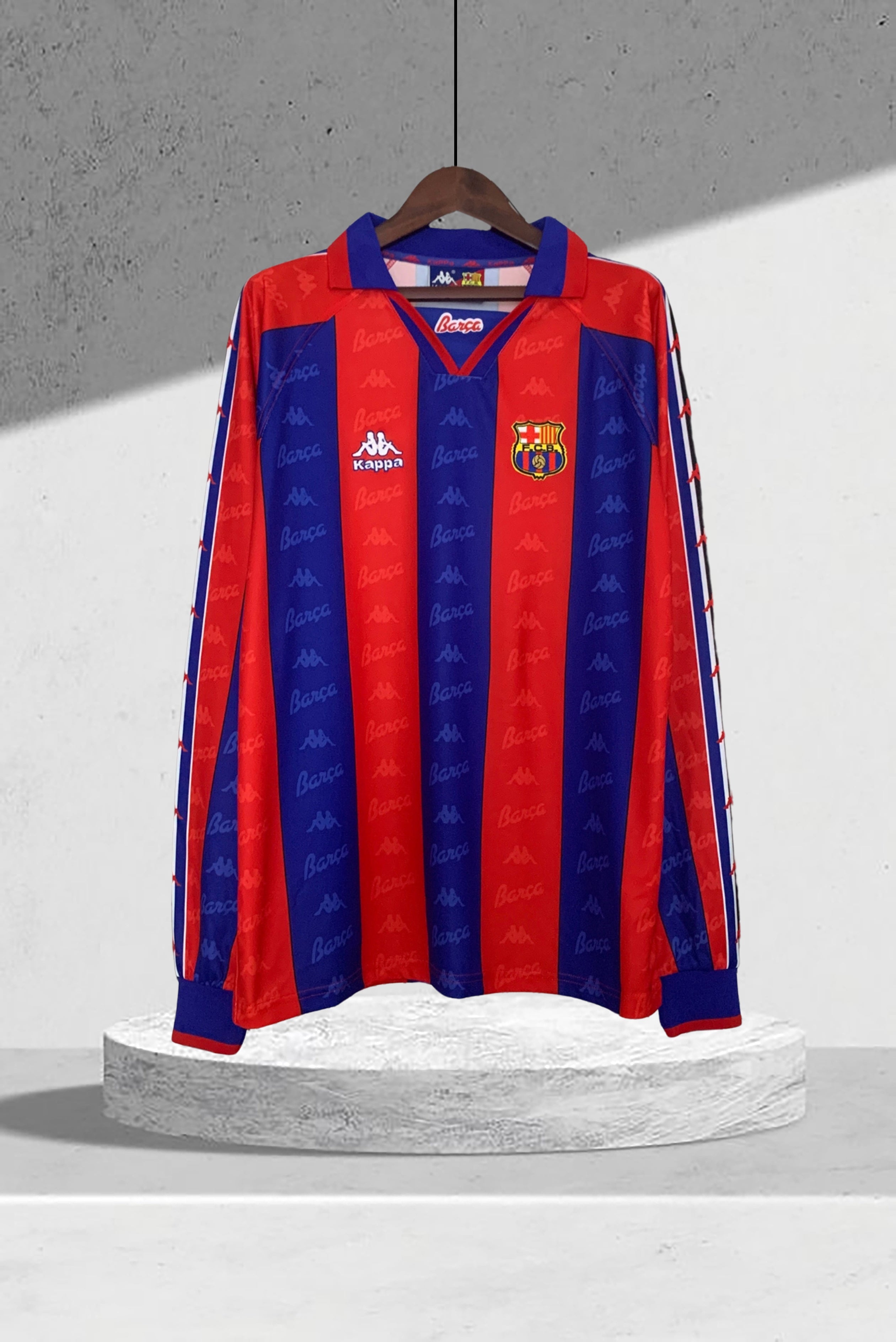Entdecken Sie das Barcelona 1996–1997 Auswärtstrikot mit langen Ärmeln – das ideale Trikot für mutige Fans. Dieses stilvolle dunkelblaue Trikot besticht mit dynamischen roten und gelben Akzenten, einem klassischen Polokragen und professionellen langen Ärmeln. Tragen Sie den Stolz und die Geschichte des FC Barcelona, während Sie die Heldentaten von Spielern wie Ronaldo Nazário und Pep Guardiola in Erinnerung rufen. Das Trikot steht für eine Saison voller Herausforderungen und beeindruckender Erfolge, einschließlich des Copa del Rey-Siegs. Zeigen Sie Ihre Verbundenheit mit der großen Fußballtradition von Barcelona!