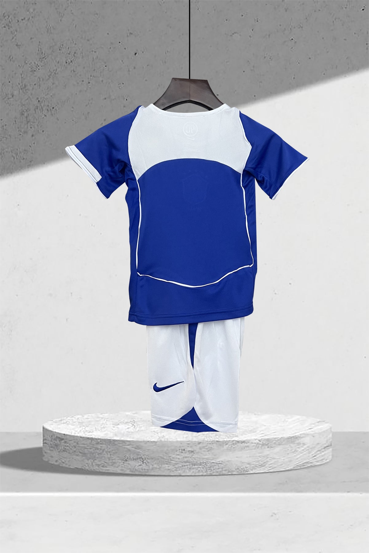 Brasilien 2004 Auswärtstrikot Mini-Kit Kinder – Blaue brasilianische Eleganz für zukünftige Fußballhelden