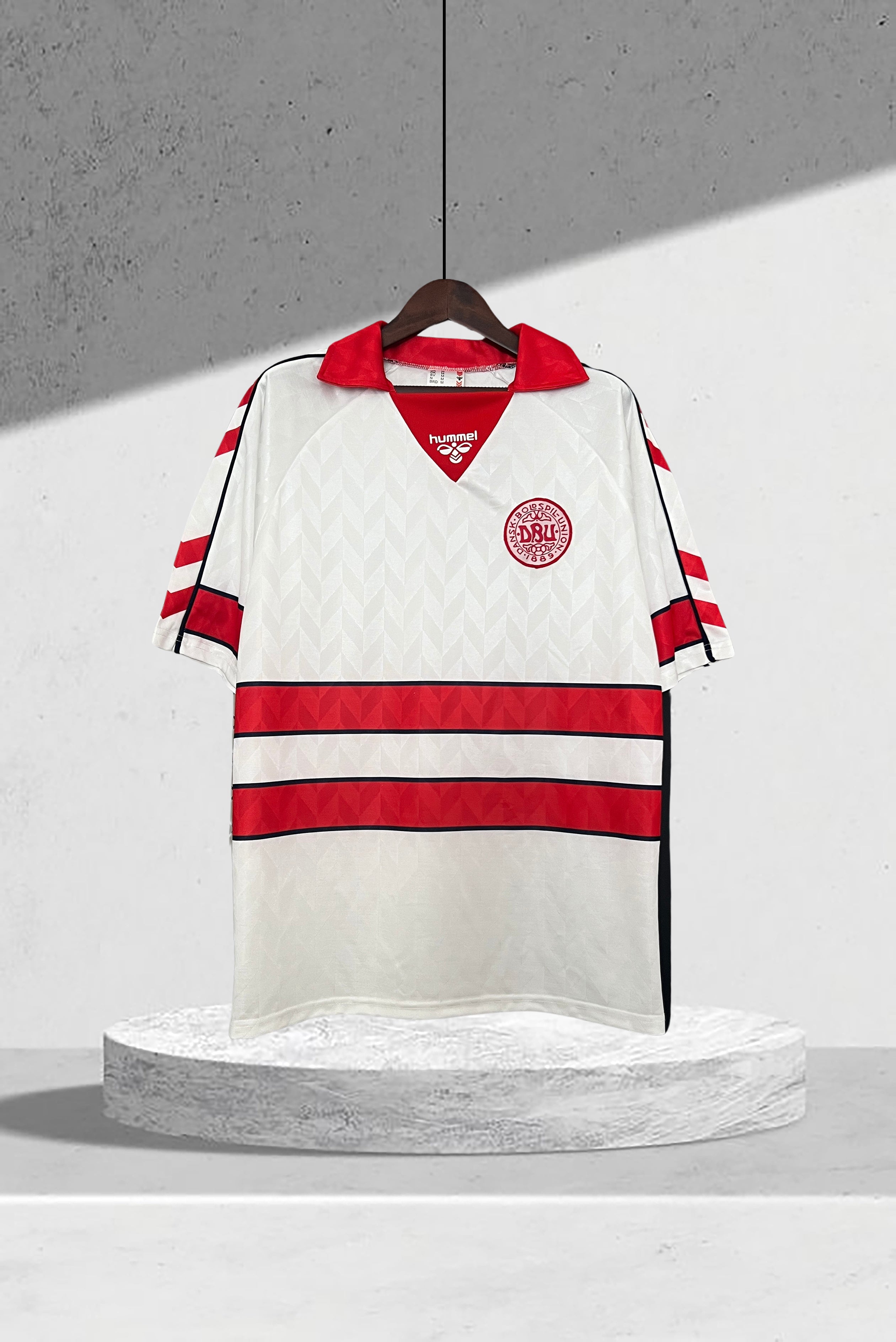 Entdecke das Dänemark EM 1988 Heimtrikot – ein Stück dänischer Fußballgeschichte. Mit seiner klassischen rot-weißen Farbkombination und dem charakteristischen Streifenmuster ist es ein echter 80er-Klassiker.