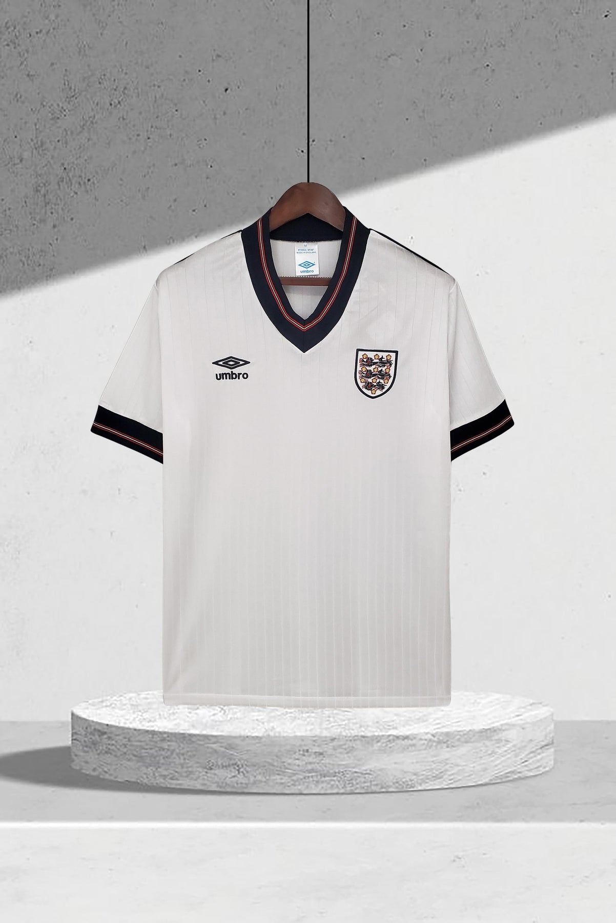 Das klare Weiß, ergänzt durch dezente hellblaue Streifen und einen klassischen V-Ausschnitt, macht es zu einem Muss für jeden Fußballfan. Dieses Trikot war Zeuge unvergesslicher Momente, darunter Linekers Hattrick gegen Polen und das legendäre Spiel gegen Argentinien.