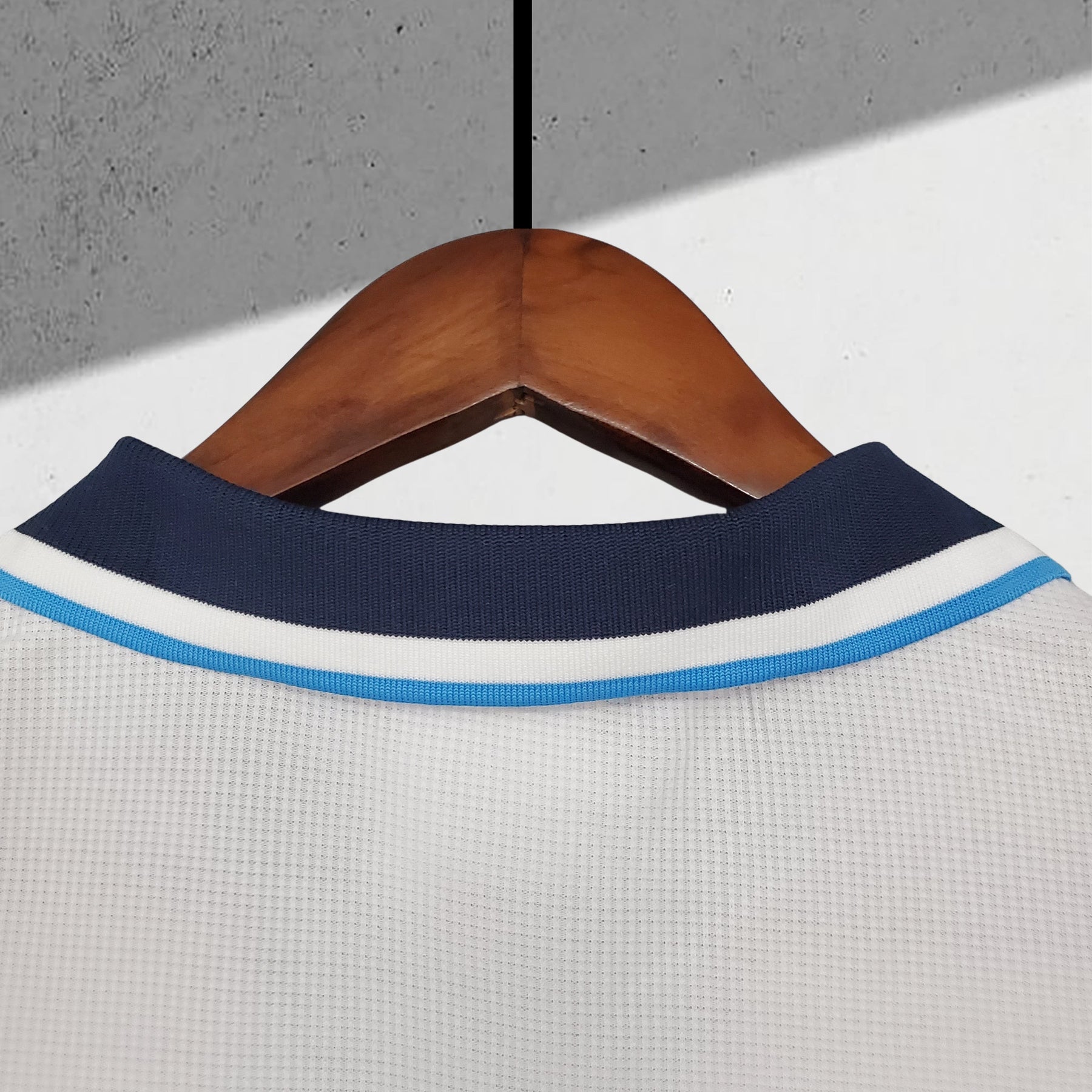 • Logos und Druck: Gesticktes „Three Lions“-Emblem mit Stern und Turnierdetails darunter – elegant und geschichtsträchtig. Rückennummer in Dunkelblau – deutlich und typisch für die Zeit.