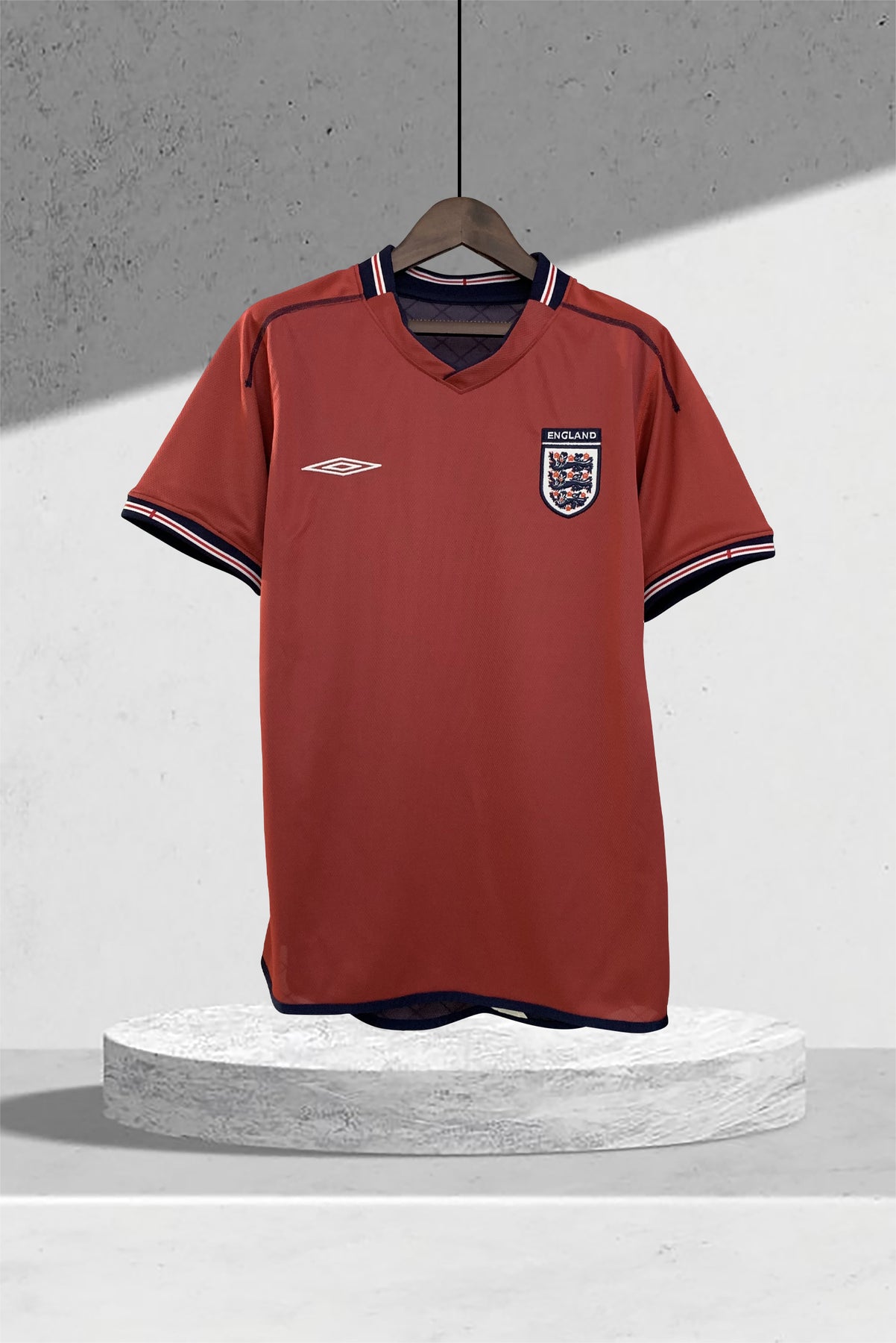 Erlebe den Stolz Englands mit dem Auswärtstrikot der WM 2002. In klassischem Tiefrot, akzentuiert durch einen dunkelblauben Kragen, vereint es Tradition und modernes Design.