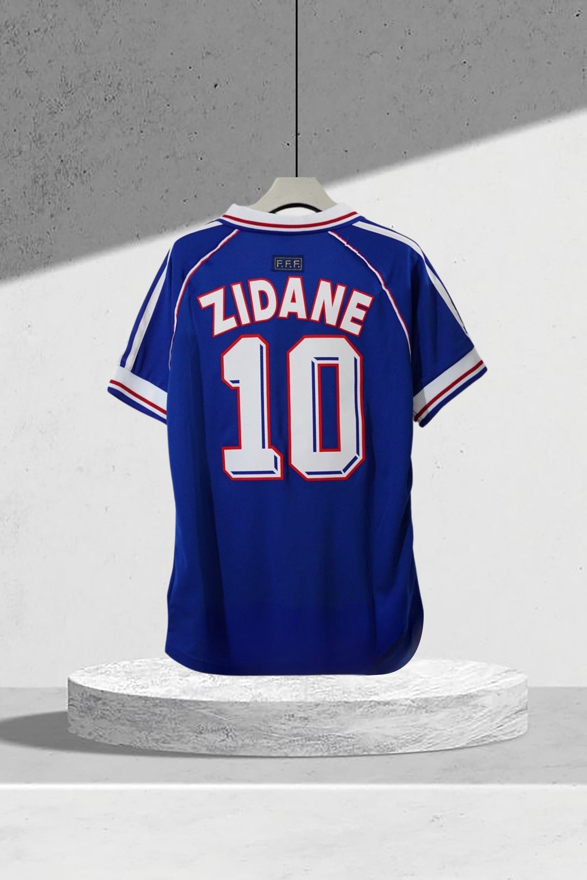 • Kragen: Zeitlos mit weiß-blauer Kontrastgestaltung – inspiriert von klassischen französischen Trikots