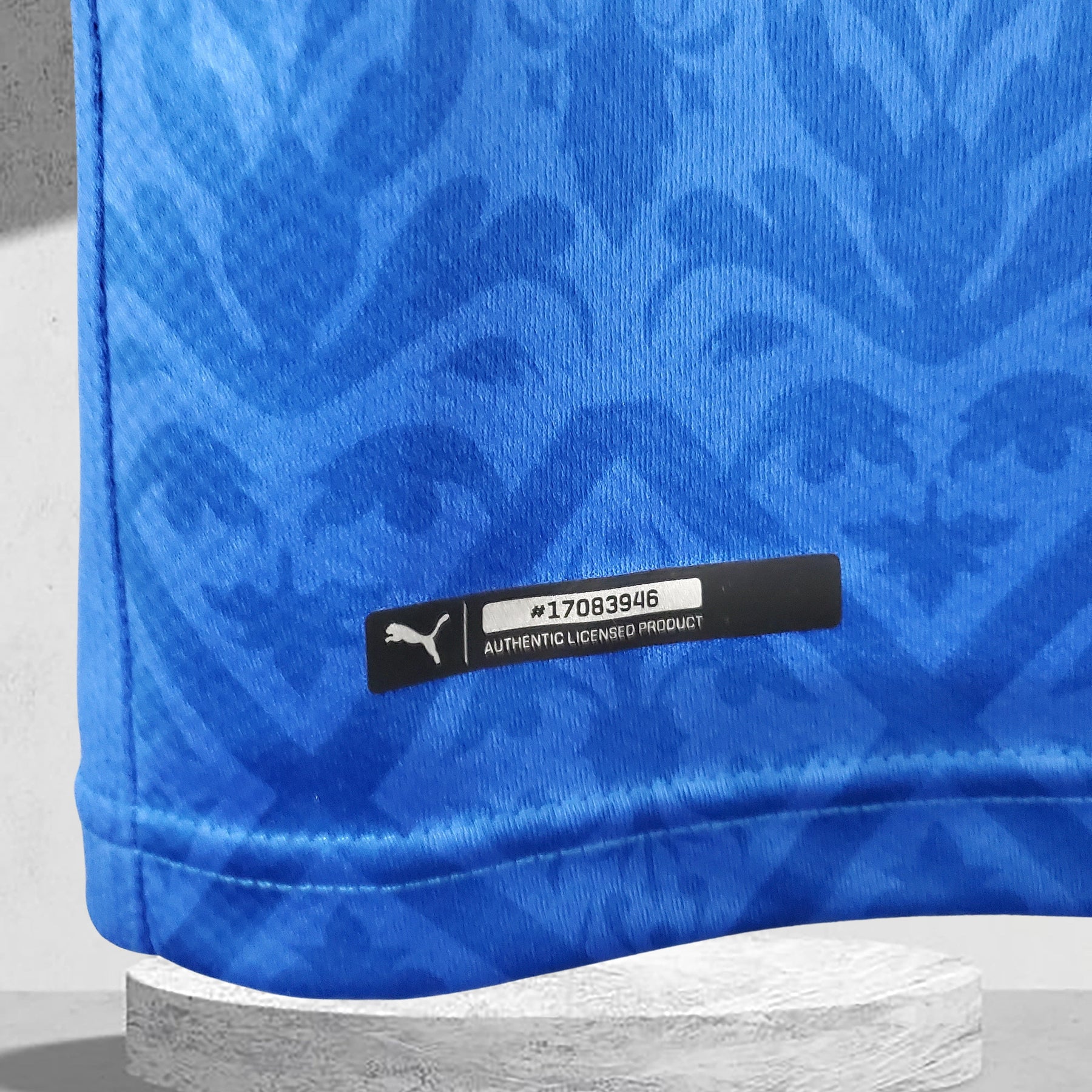 Das Heimtrikot Italiens aus dem Jahr 2020 wurde entworfen, um eine neue Ära der Squadra Azzurra einzuleiten – und gleichzeitig die stolze Geschichte der Nation zu ehren. Es wurde in einer Phase getragen, in der Italien sowohl national als auch international große Ambitionen hegte. Dieses Trikot symbolisiert Italiens Fähigkeit zur Erneuerung, ohne seine Traditionen zu vergessen.
