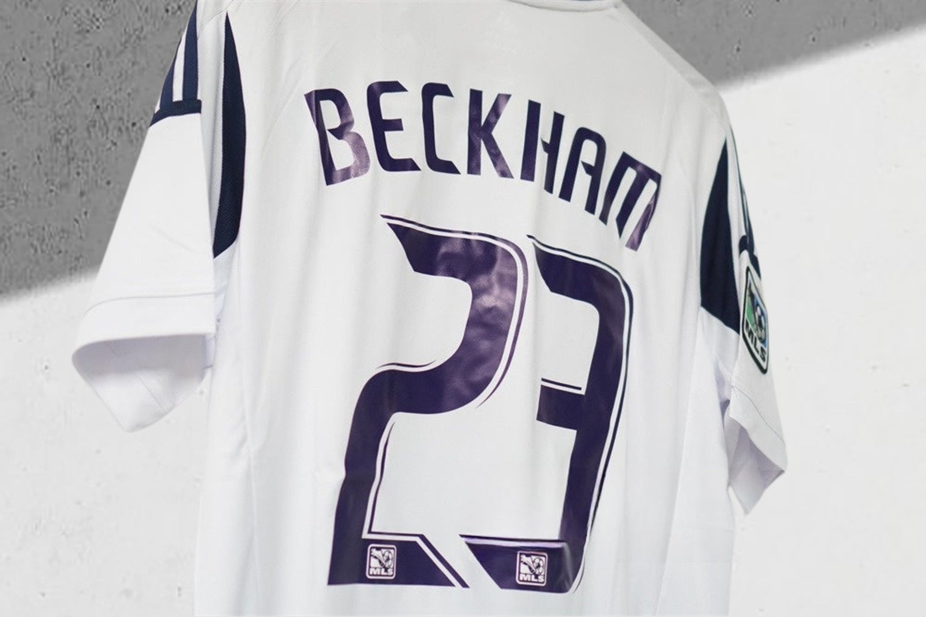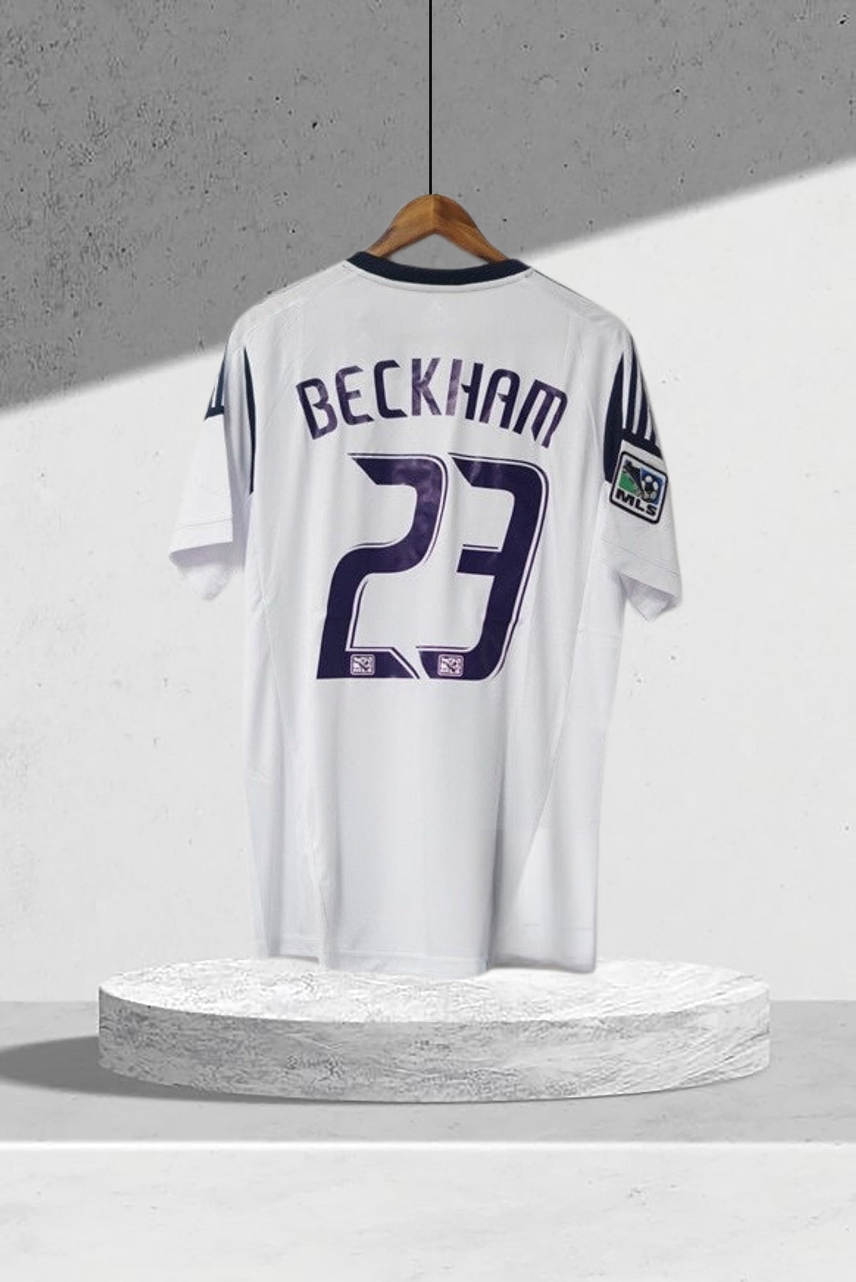 - Logos: Gold-blaues LA Galaxy-Wappen und MLS-Cup-Champions-Patch