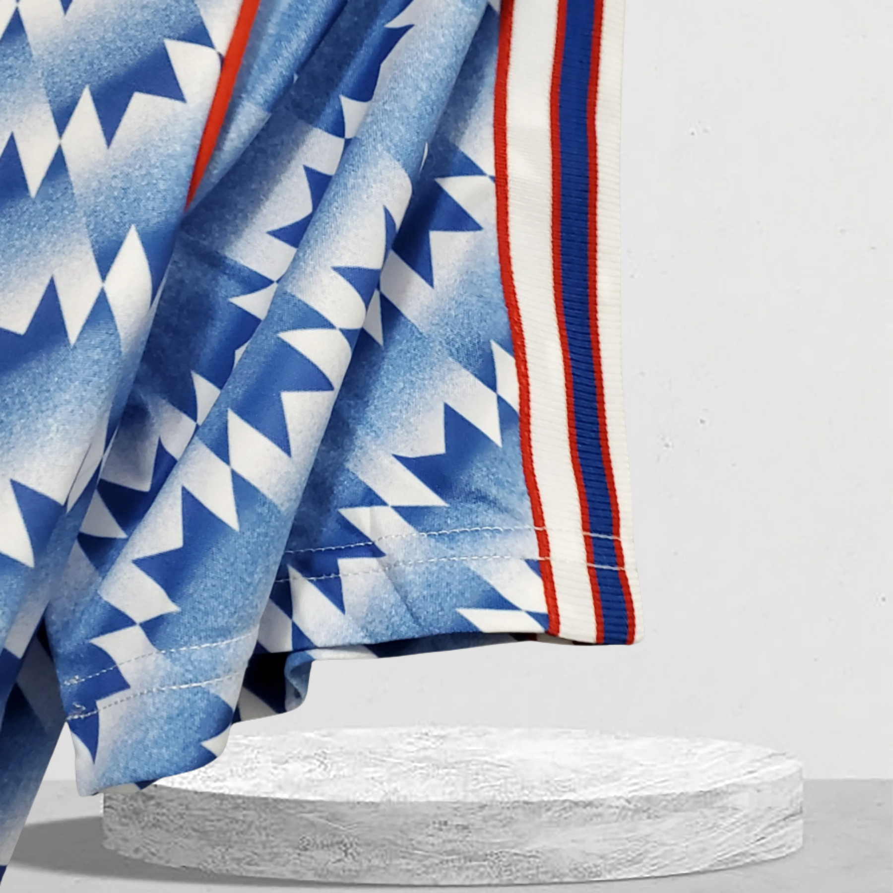 Das Auswärtstrikot von Manchester United aus der Saison 1990–1991 ist eines der legendärsten Alternativtrikots in der Geschichte des Klubs. Dieses ikonische blaue Trikot wurde getragen, als United im Finale des Europapokals der Pokalsieger in Rotterdam den FC Barcelona mit 2:1 besiegte – der erste europäische Titel unter Sir Alex Ferguson. Ein Trikot, das den Beginn der modernen Erfolgsgeschichte des Vereins symbolisiert.