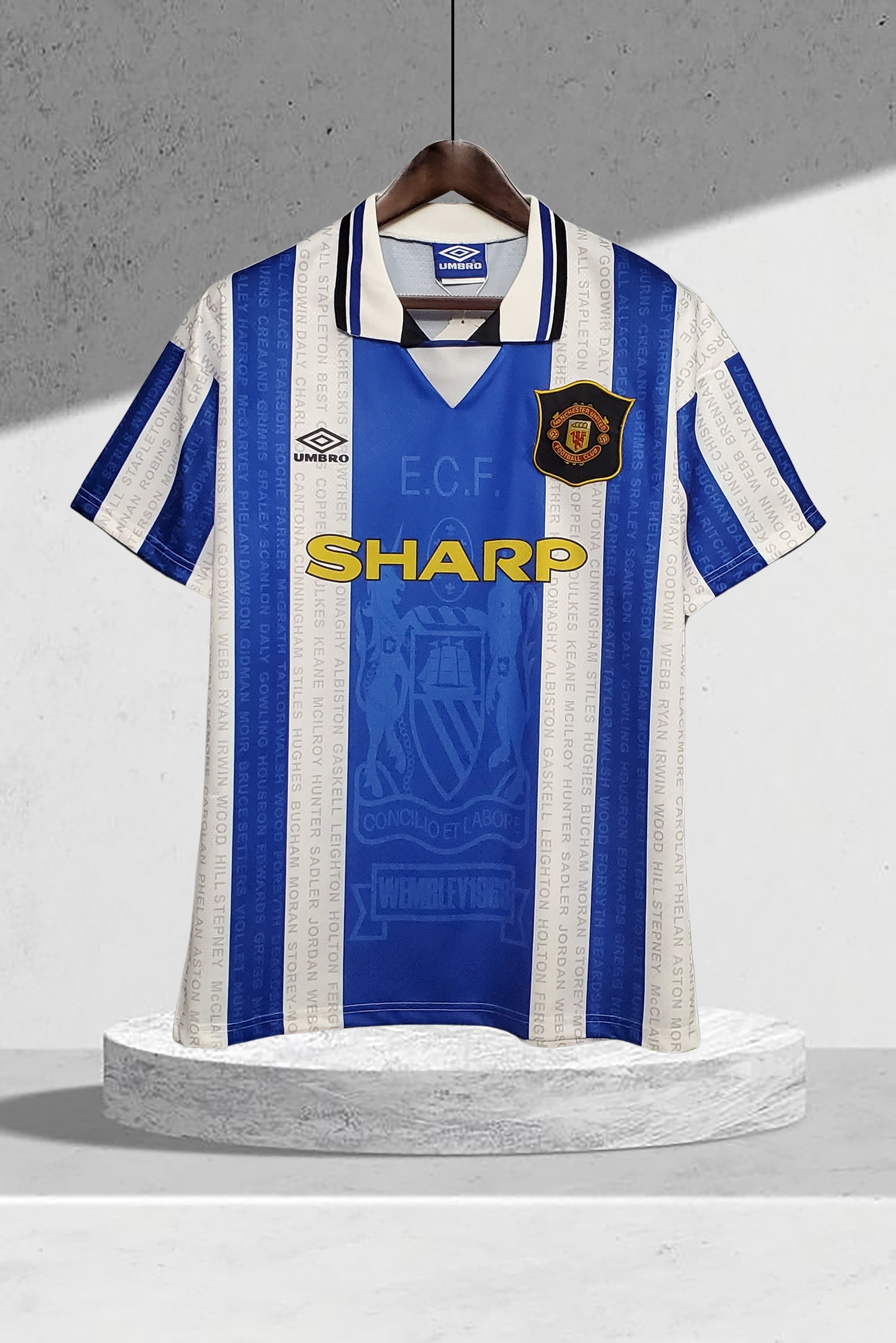 Erlebe das Manchester United 1994–1995 Heimtrikot – ein wahres Symbol der 90er Jahre. Mit seinem tiefroten Karomuster und dem schwarzen Polokragen verkörpert dieses Trikot den Old-Trafford-Look der Glanzzeit. Trage das Erbe von Legenden wie Eric Cantona und Ryan Giggs.