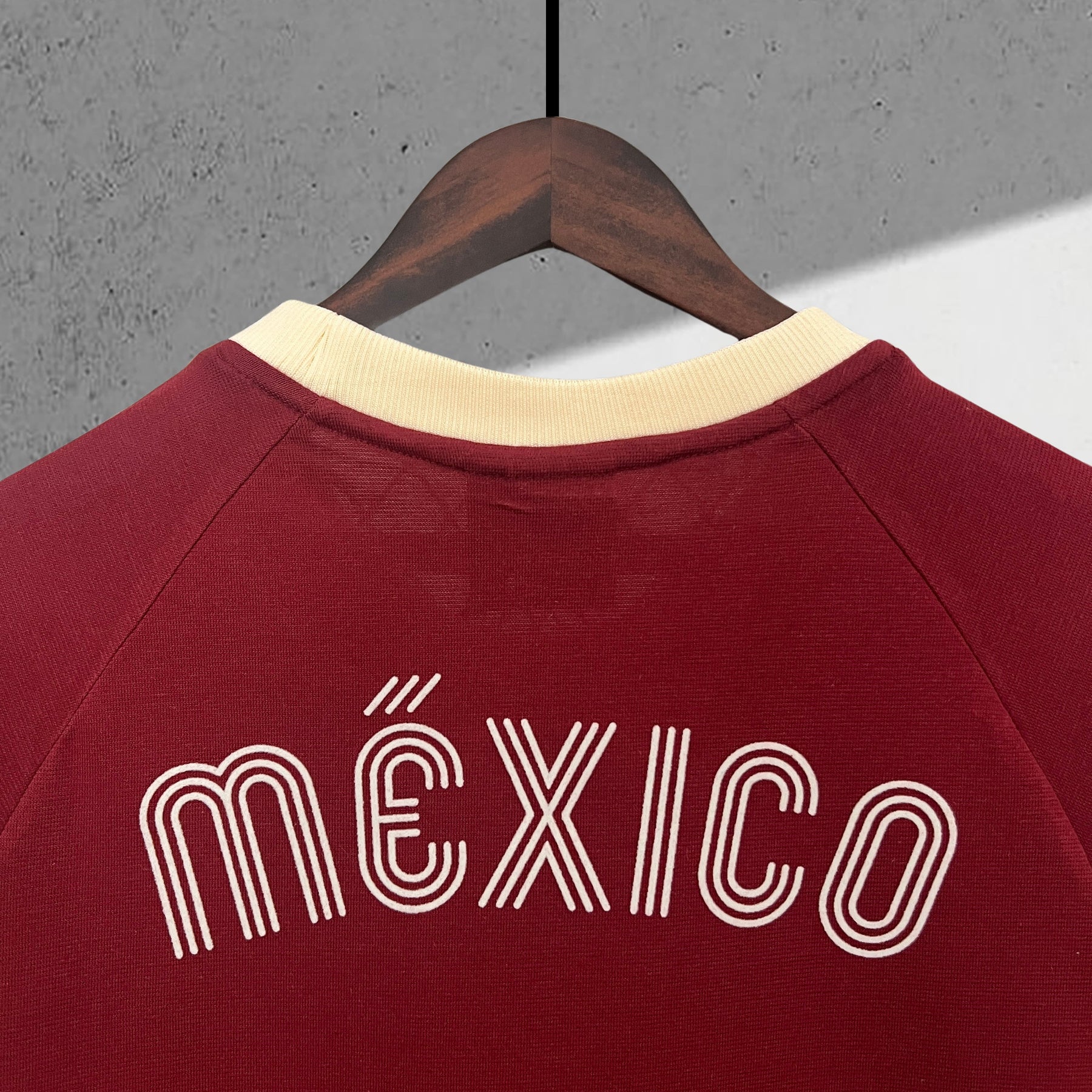 Das Special Edition-Trikot von Mexiko aus dem Jahr 2022 ist eine stilvolle Rückbesinnung auf die nostalgische Ära des Fußballs. Mit seiner tief weinroten Farbe und cremeweißen Details feiert dieses Trikot das reiche Erbe der Nationalmannschaft – eine elegante Hommage an die ikonischen El-Tri-Generationen der 70er- und 80er-Jahre.