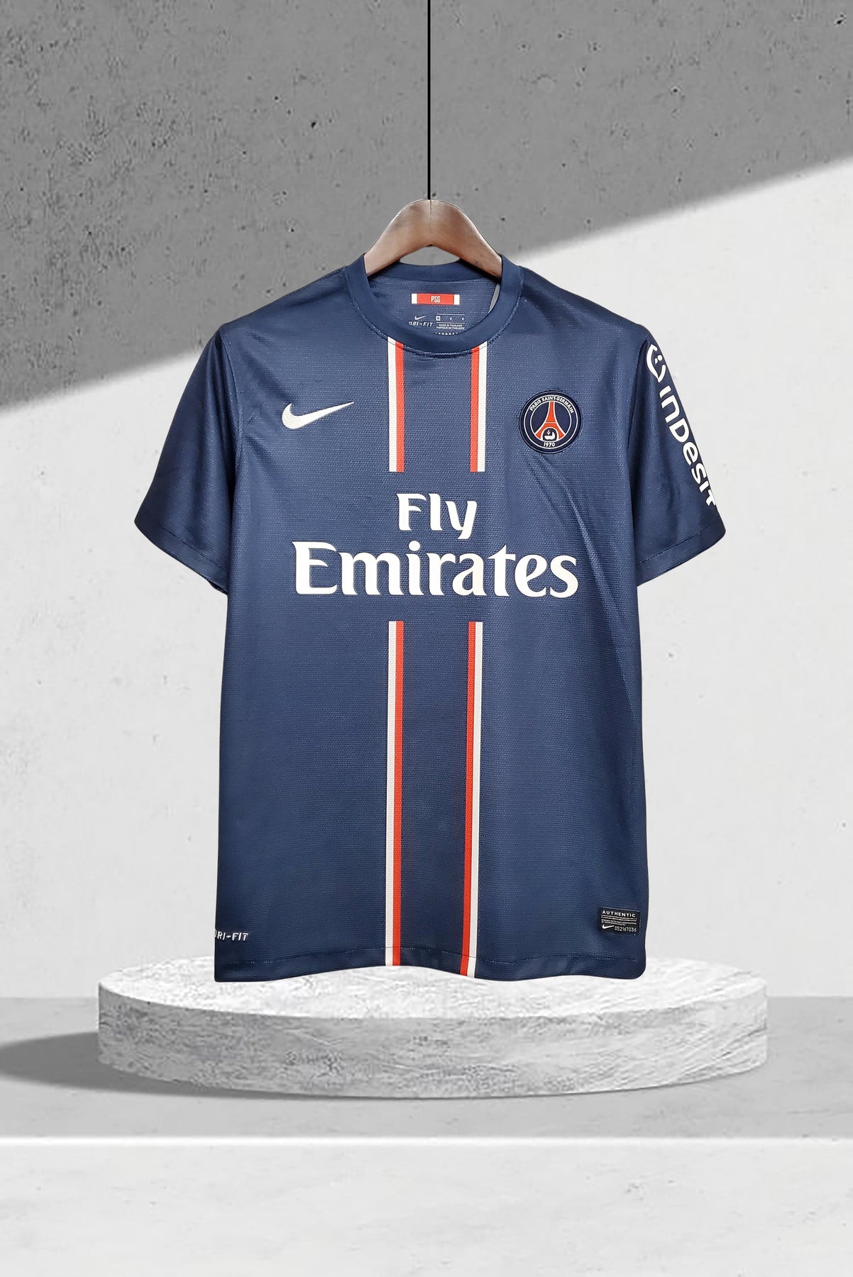 Entdecken Sie das Paris Saint-Germain 2012–2013 Heimtrikot – ein historisches Kleidungsstück, das die Wiedergeburt eines Topklubs symbolisiert. Dieses Trikot in tiefem Marineblau mit eleganten roten und weißen Streifen ist ein Zeichen für den Erfolg und die Ambitionen von PSG.