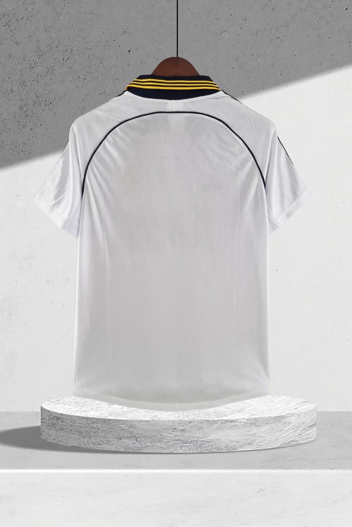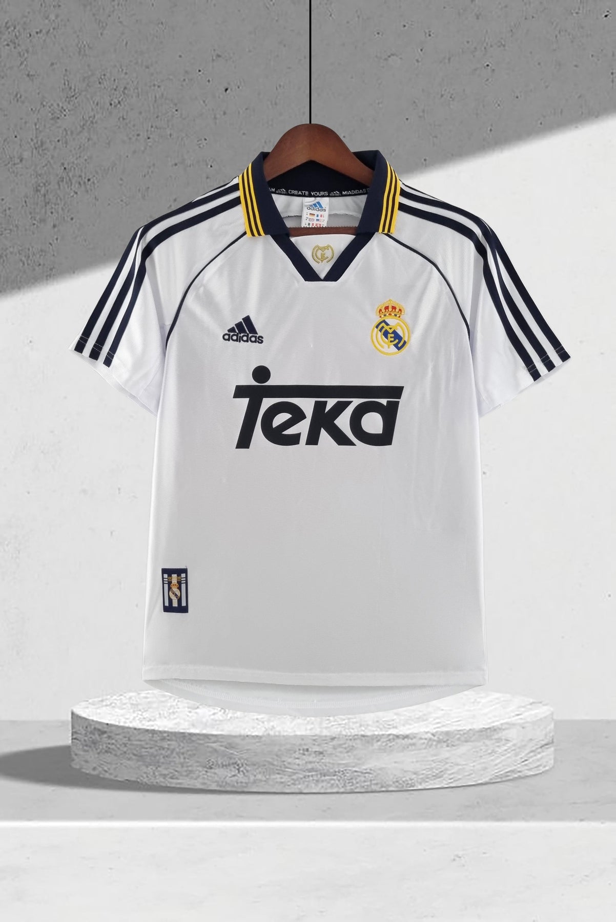 Entdecke das Real Madrid 2000–2001 Heimtrikot – ein zeitloser Klassiker aus der Galáctico-Ära. Dieses Trikot verkörpert die stolze Tradition des Vereins mit seinem klaren weißen Design und eleganten dunklen Akzenten. Trage die Farben von Stars wie Raúl González und Fernando Hierro, die in dieser Saison den 28. La Liga-Titel sicherten. Perfekt für Fußballfans und Sammler, die Geschichte hautnah erleben möchten. Sichere dir jetzt dieses ikonische Stück Vereinsgeschichte!