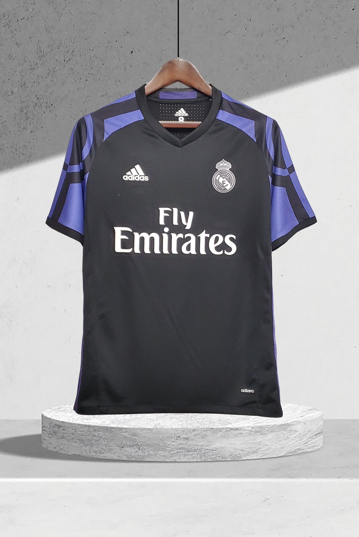 Das Real Madrid 2015–2016 3. Trikot ist mehr als nur ein Kleidungsstück – es ist ein Symbol für Stärke und europäischen Ruhm. Mit seinem kohle-grauen Design und neongrünen Akzenten strahlt es puren Stil aus. Dieses Trikot wurde in einer Saison getragen, die die Klubgeschichte prägte, u.a. von Stars wie Cristiano Ronaldo und Sergio Ramos.