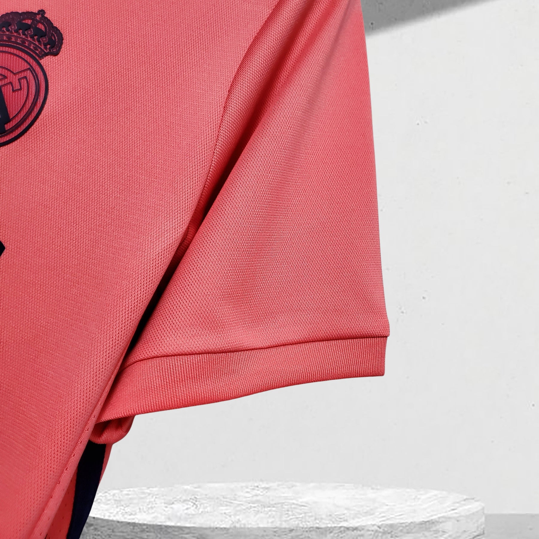 Erlebe die Eleganz und den Kampfgeist mit dem Real Madrid 2020–2021 Auswärtstrikot. Dieses stilvolle, tiefschwarze Trikot mit frischen rosa Akzenten verkörpert die moderne Identität des Klubs und bleibt seinen Wurzeln treu.