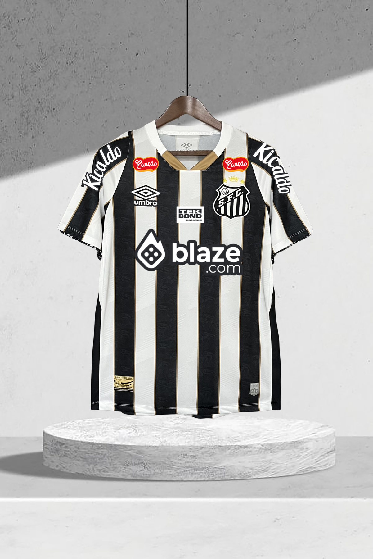 Das Auswärtstrikot von Santos für die Saison 2024–2025 ist eine mutige Neuinterpretation der klassischen schwarz-weißen Streifen des Klubs – hier treffen Tradition und Technologie in einem modernen und kraftvollen Design aufeinander. Mit pixelinspirierten Details und goldenen Akzenten ist dieses Trikot eine visuelle Brücke zwischen der reichen Vereinsgeschichte und einer digitalen Zukunft.