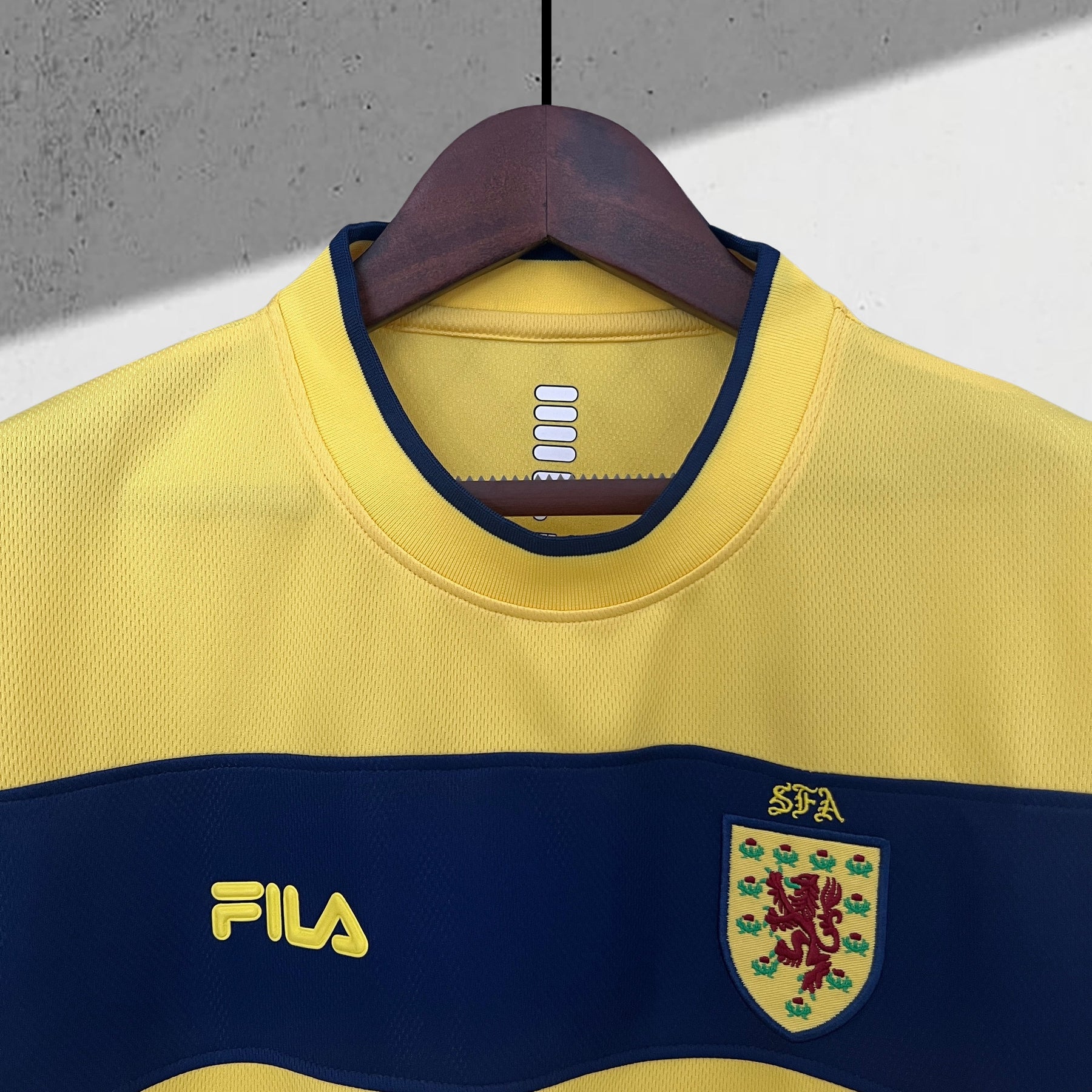 🟡🔵🏴 Hol dir Schottlands goldfarbenes Auswärtstrikot von 2002 und trage es mit erhobenem Haupt – wie ein moderner Highland-Krieger im Dienst des Fußballs.
