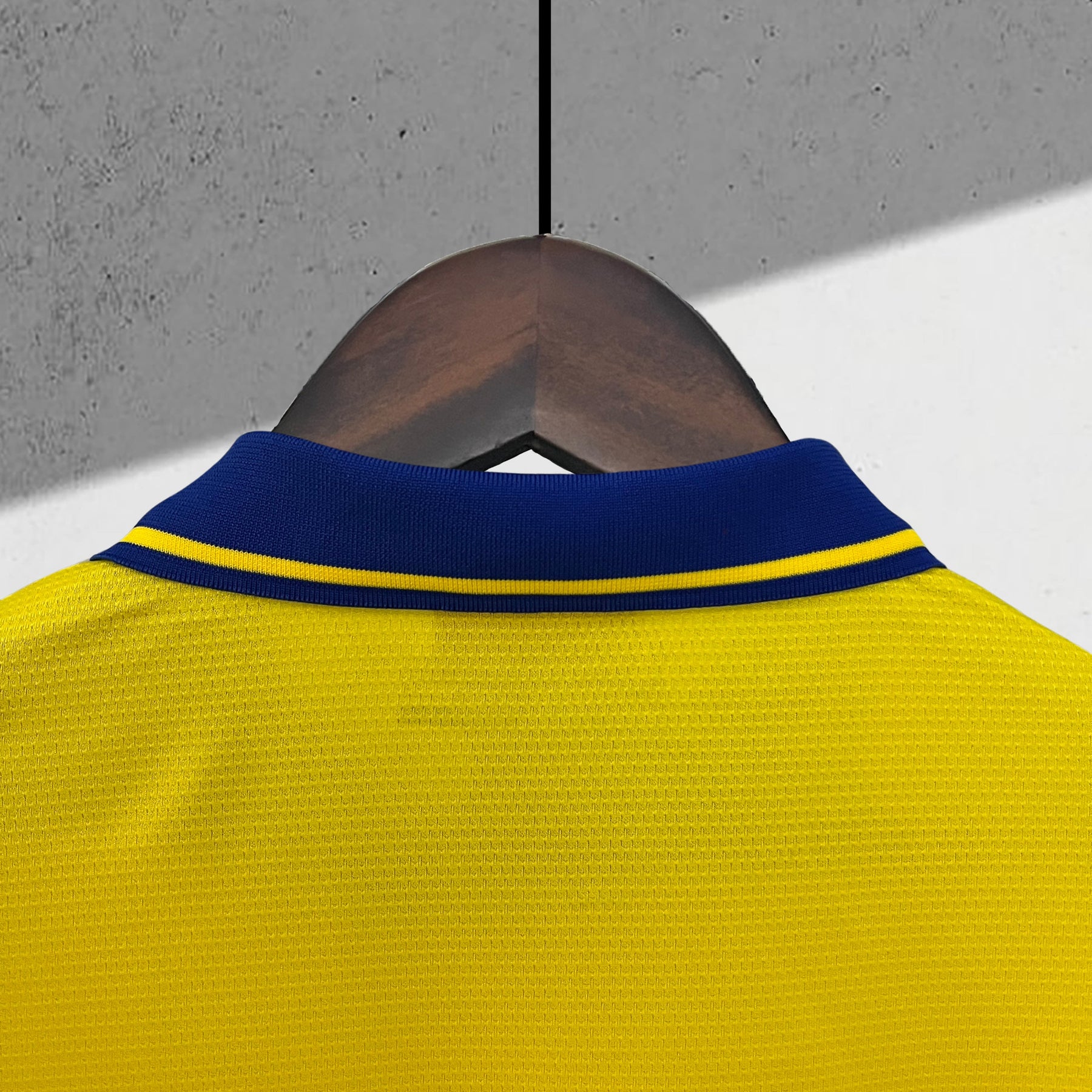 • Hauptfarbe: Kräftiges Kanariengelb – lebendig, retroinspiriert und treu zu Arsenals klassischem Auswärtsstil.