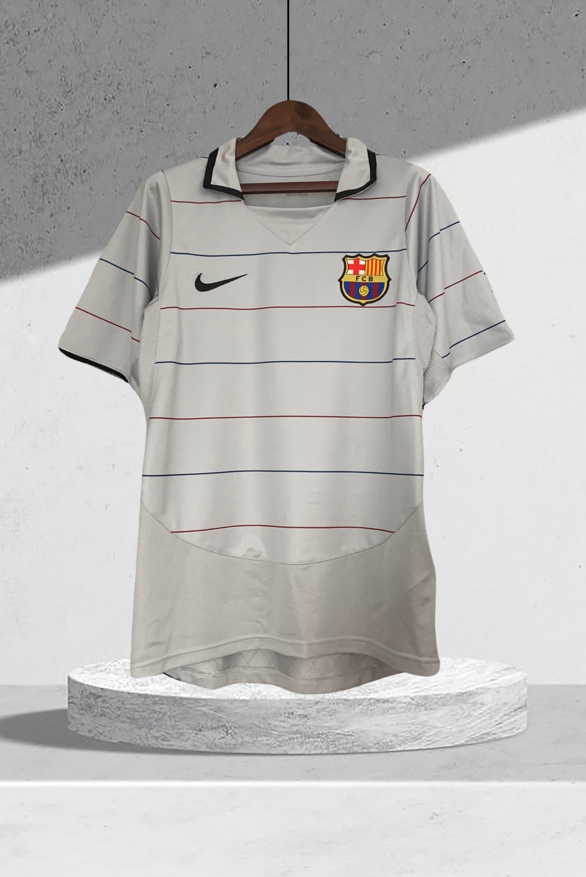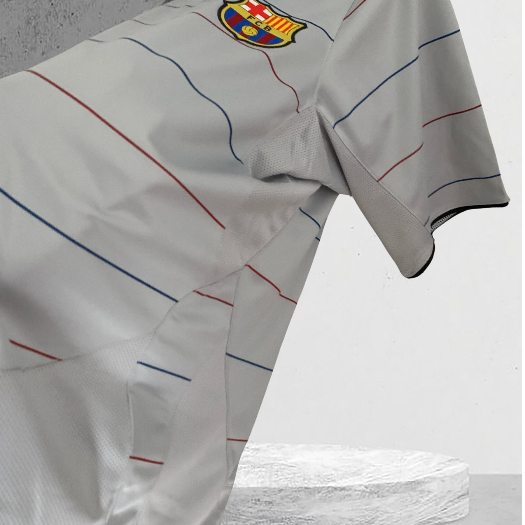 Das Barcelona 2003–2004 Auswärtstrikot ist ein Klassiker, der eine spannende Übergangszeit für den FC Barcelona verkörpert. Mit elegantem Dunkelblau und dynamischen roten Akzenten präsentiert es sich zeitlos und professionell.