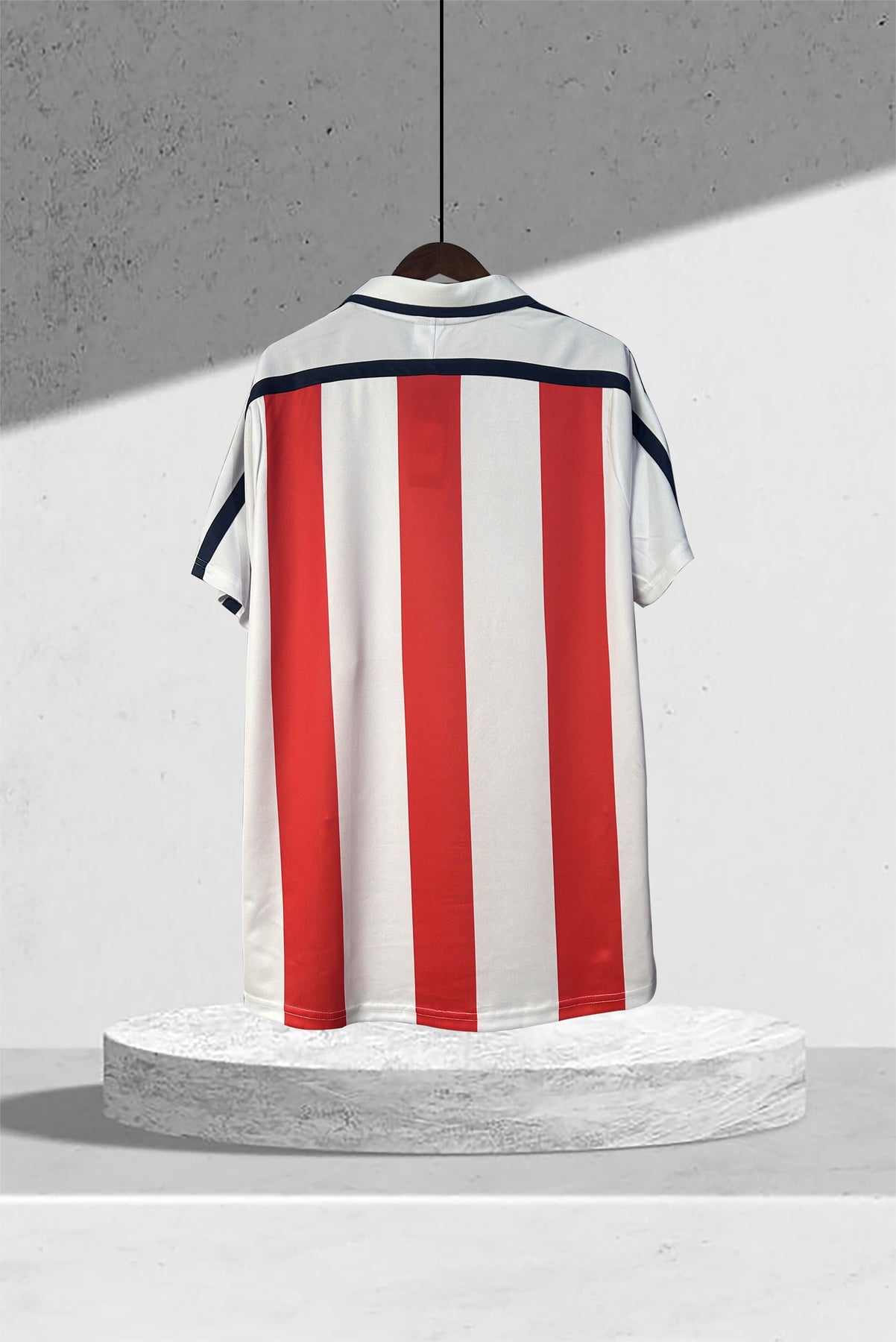 • Details: Dunkelblaues Band über Brust und Schultern – verleiht Balance und hebt Sponsor sowie Vereinswappen hervor.