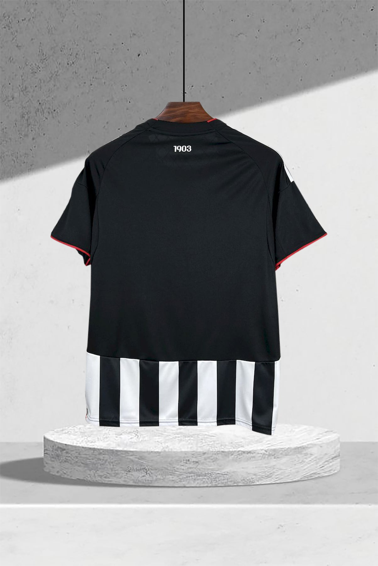 • Logos und Drucke: Gesticktes Club-Emblem mit drei Sternen und klassischem Wappen – kombiniert mit weißem Sponsoraufdruck vorne.
