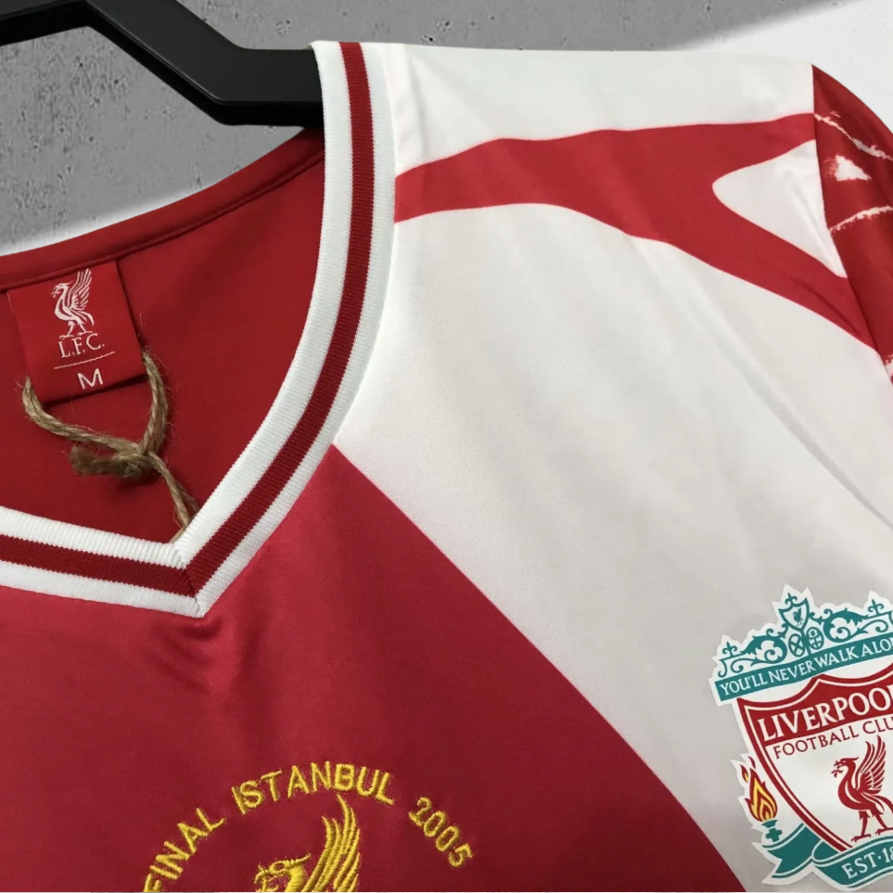 Diese Sonderedition aus dem Jahr 2005 wurde entworfen, um einen der legendärsten Momente der europäischen Fußballgeschichte zu würdigen. Inspiriert vom Finale in Istanbul, in dem Liverpool einen 0:3-Rückstand gegen den AC Mailand in ein Sieg verwandelte und seinen fünften Europapokal-Titel nach dramatischem Elfmeterschießen holte. Ein rotes Trikot mit historischer Bedeutung und emotionaler Symbolik.