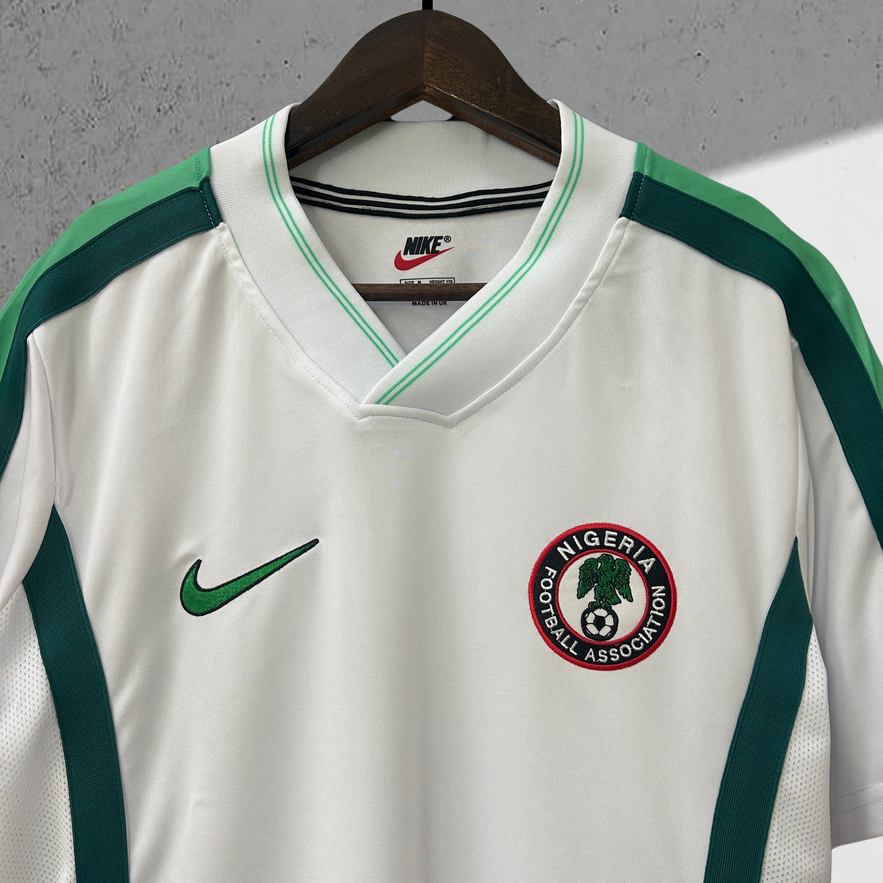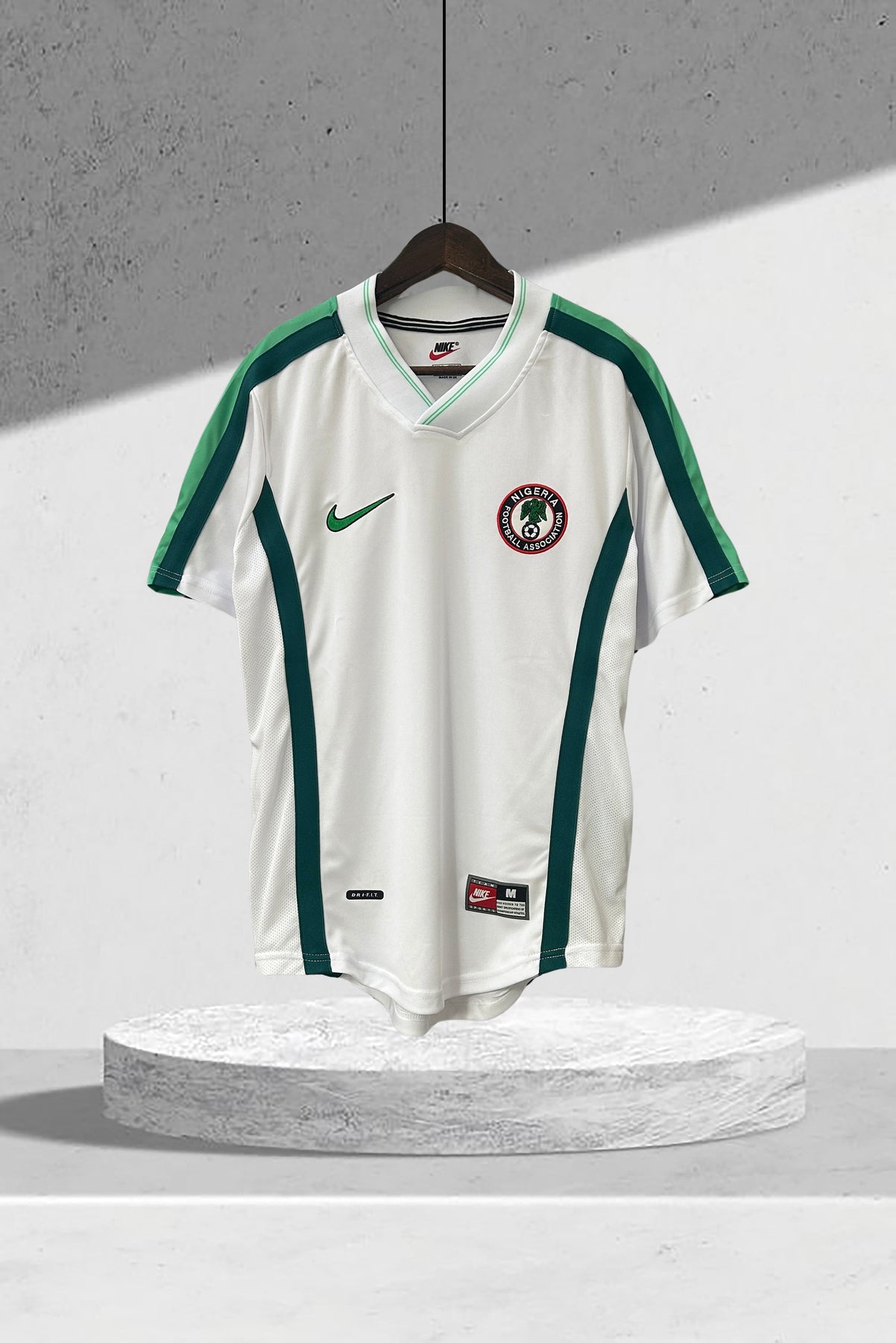 🟢⚪🦅 Hol dir das Nigeria 1998 Auswärtstrikot von der WM und trage die Farben, die alle Regeln brachen – mit Rhythmus, Mut und echter Super-Eagles-Attitüde.