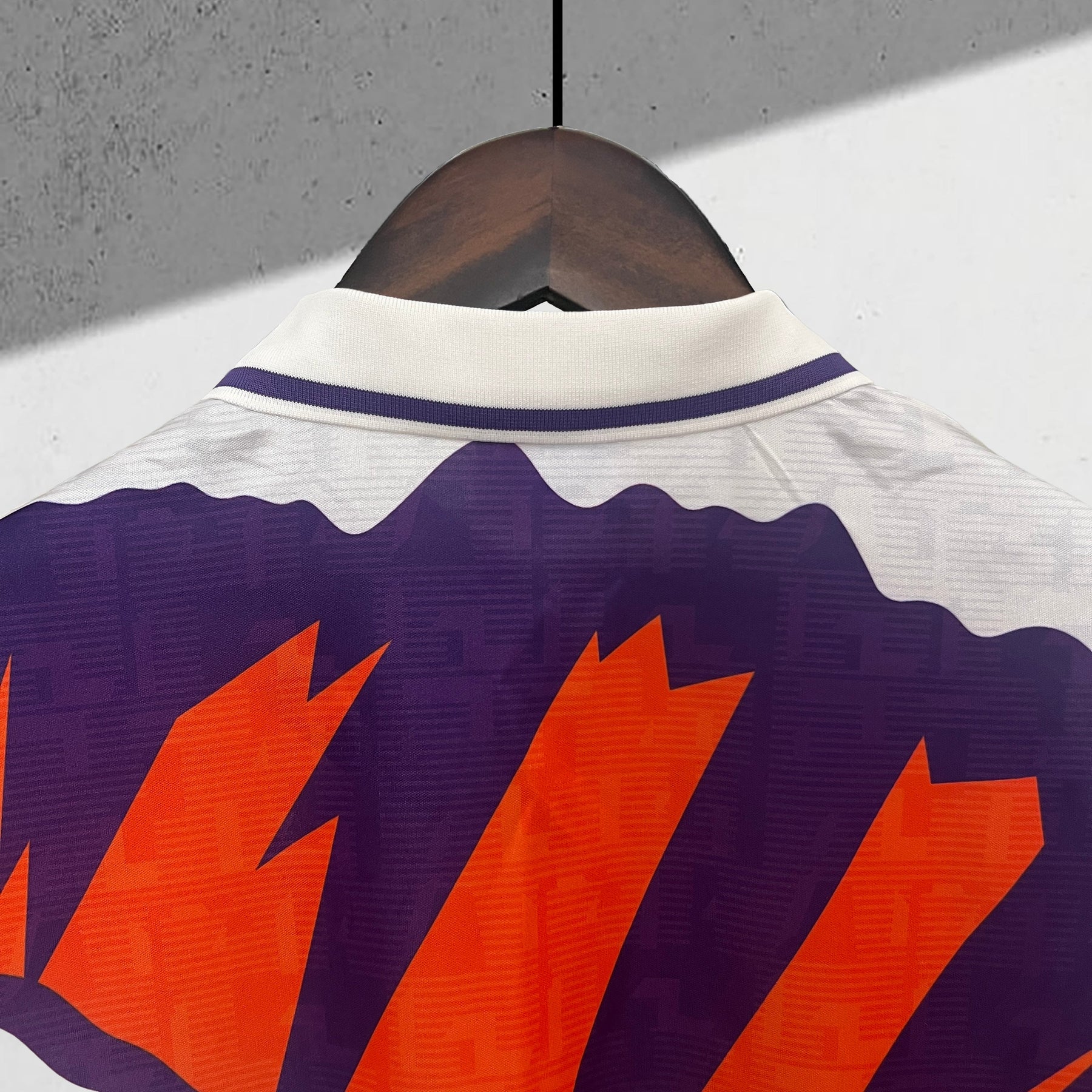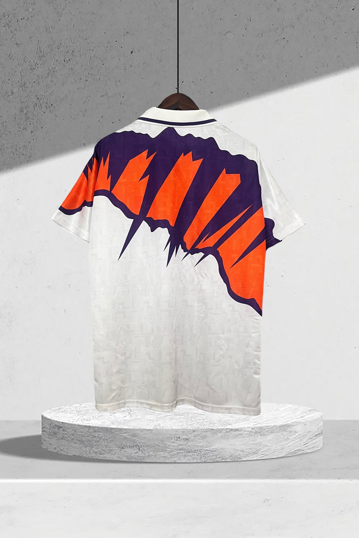 Das Auswärtstrikot Schottlands aus der Saison 1991–1993 zählt zu den ikonischsten und mutigsten Designs im europäischen Nationalmannschaftsfußball. Mit seiner explosiven Farbkombination aus Lila und Rot sowie einem geometrischen Muster, das sich diagonal über die Brust zieht, steht dieses Trikot für eine Ära, in der Mode und Fußball auf einzigartige Weise miteinander verschmolzen. Kein gewöhnliches Auswärtstrikot – sondern ein visuelles Statement schottischen Selbstbewusstseins und Stils.