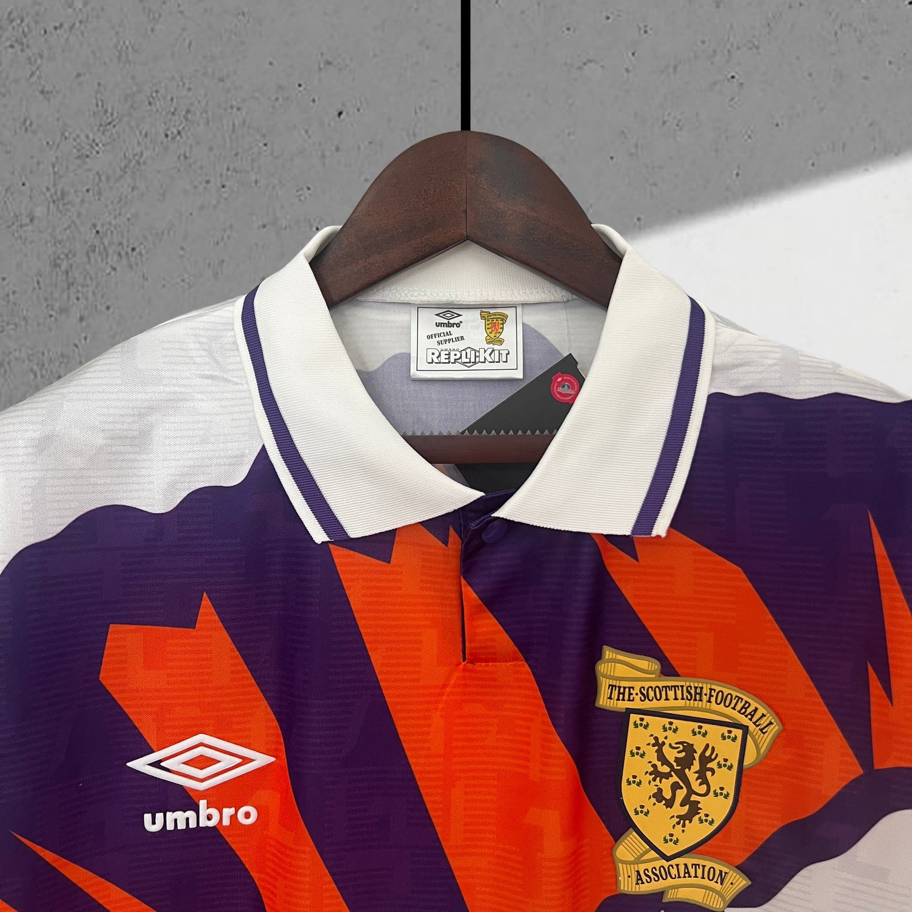 ⚪🟣🔴 Hol dir das Schottland-Auswärtstrikot von 1991–1993 und trage die Farben mit Stolz – ein Trikot, das von Mut, Stil und schottischer Fußballtradition erzählt.