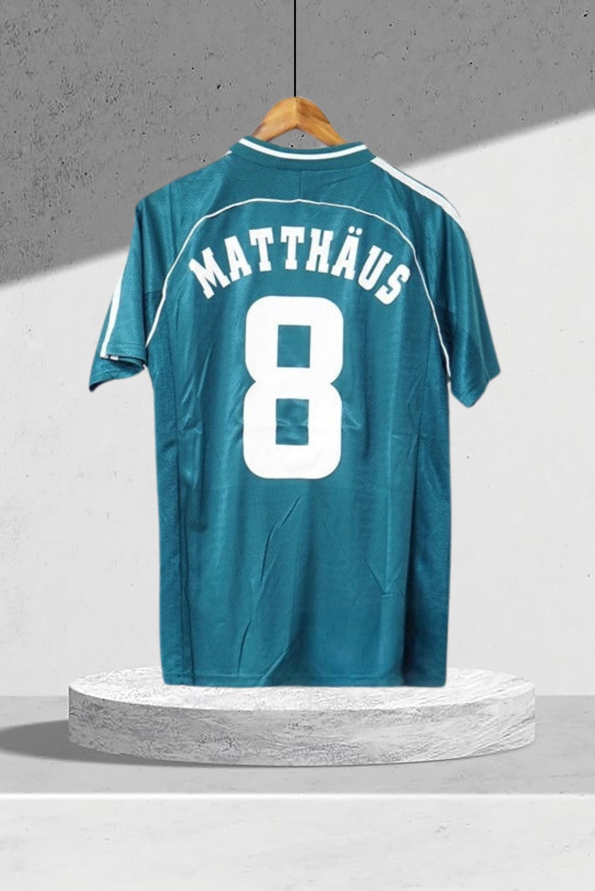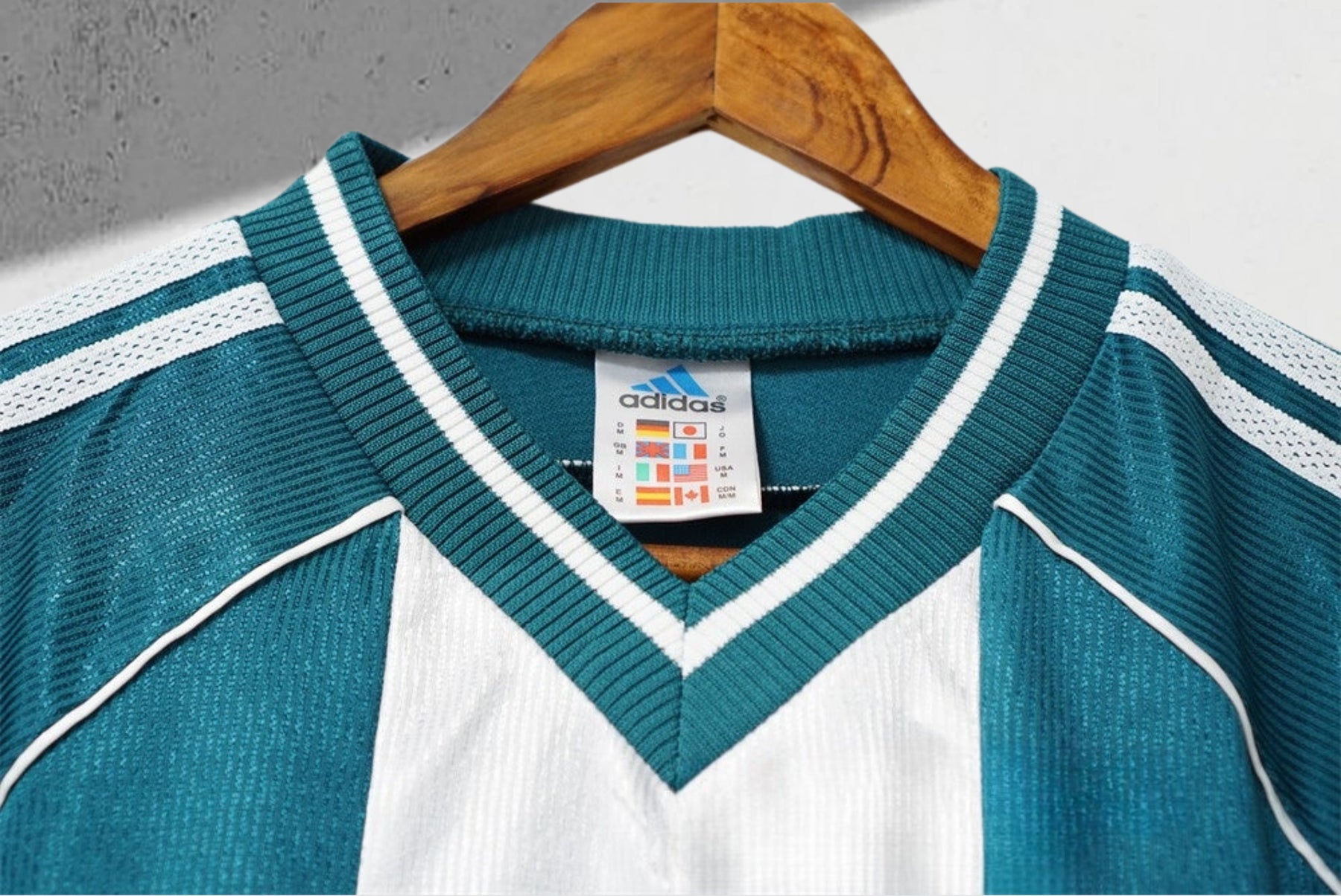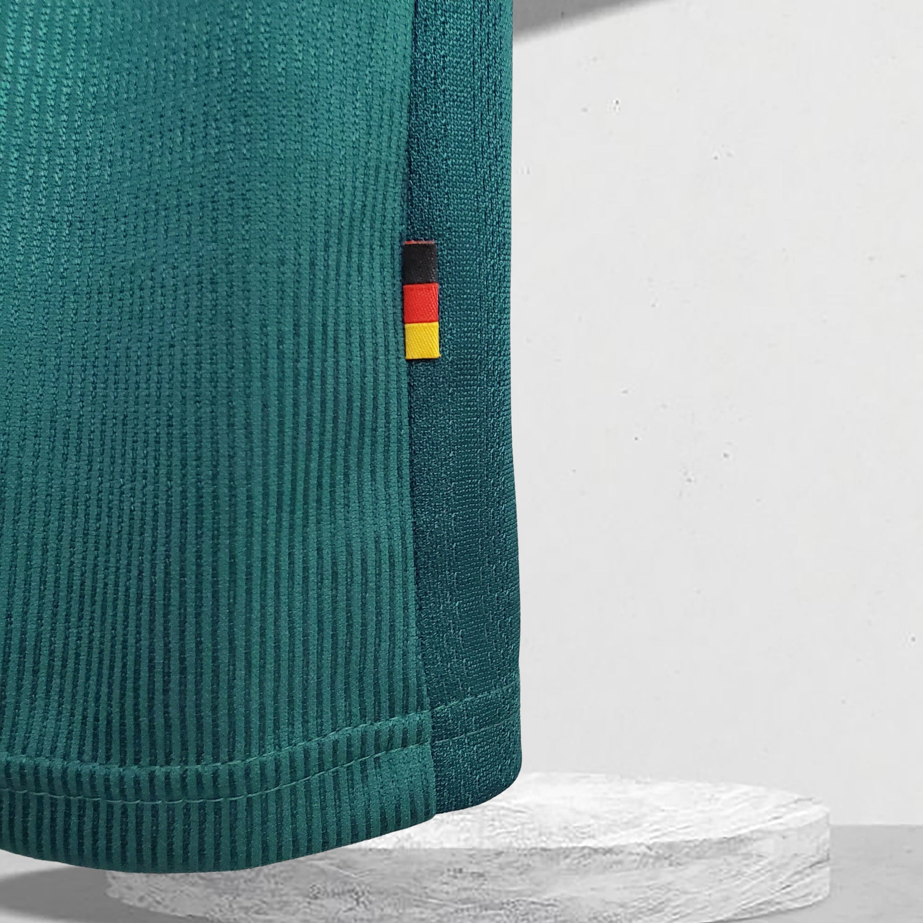 Erlebe ein klassisches Trikot, das von Die Mannschaft bei der Weltmeisterschaft 1998 in Frankreich getragen wurde. Dieses Auswärtstrikot steht für eine bedeutende Phase im deutschen Fußball und erinnert an ein Turnier, in dem das Team nach starker Leistung das Viertelfinale erreichte.